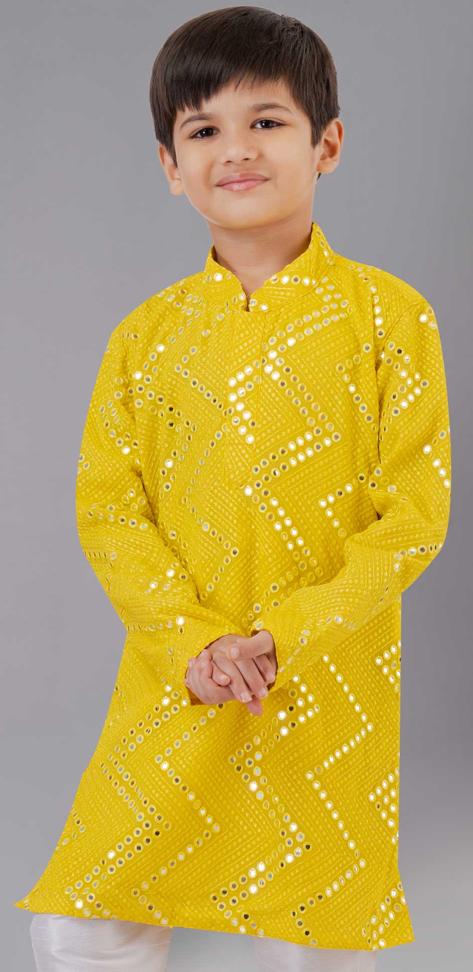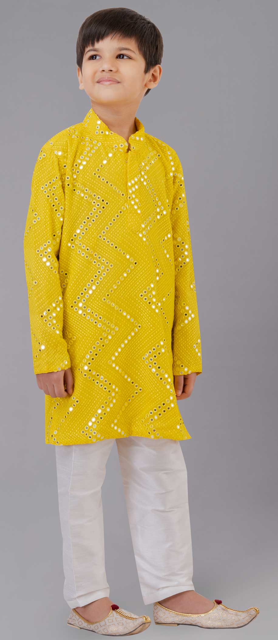 Yellow color Boys Kurta Pyjama in Georgette fabric with Embroidered, Sequence work