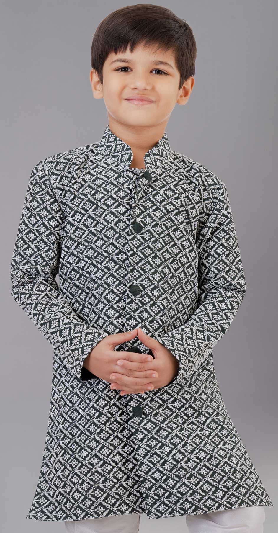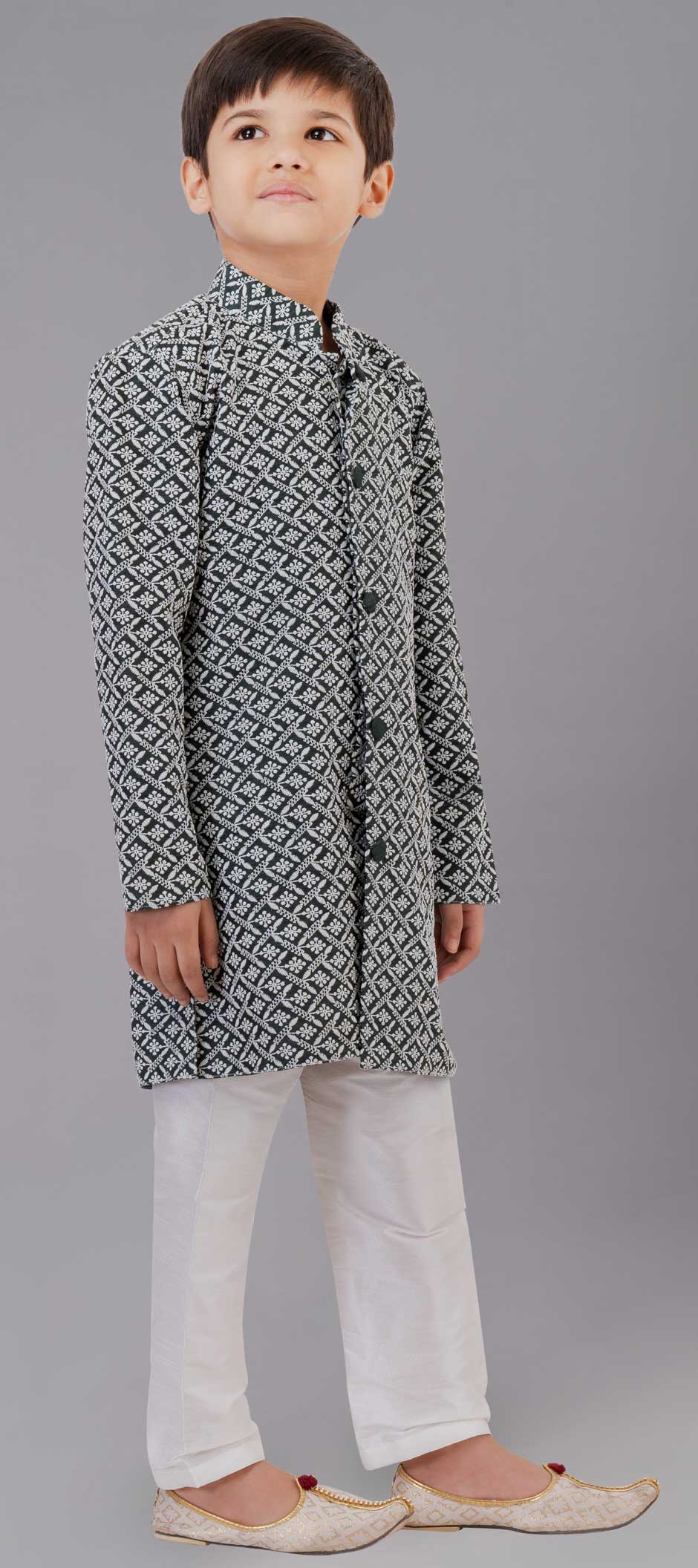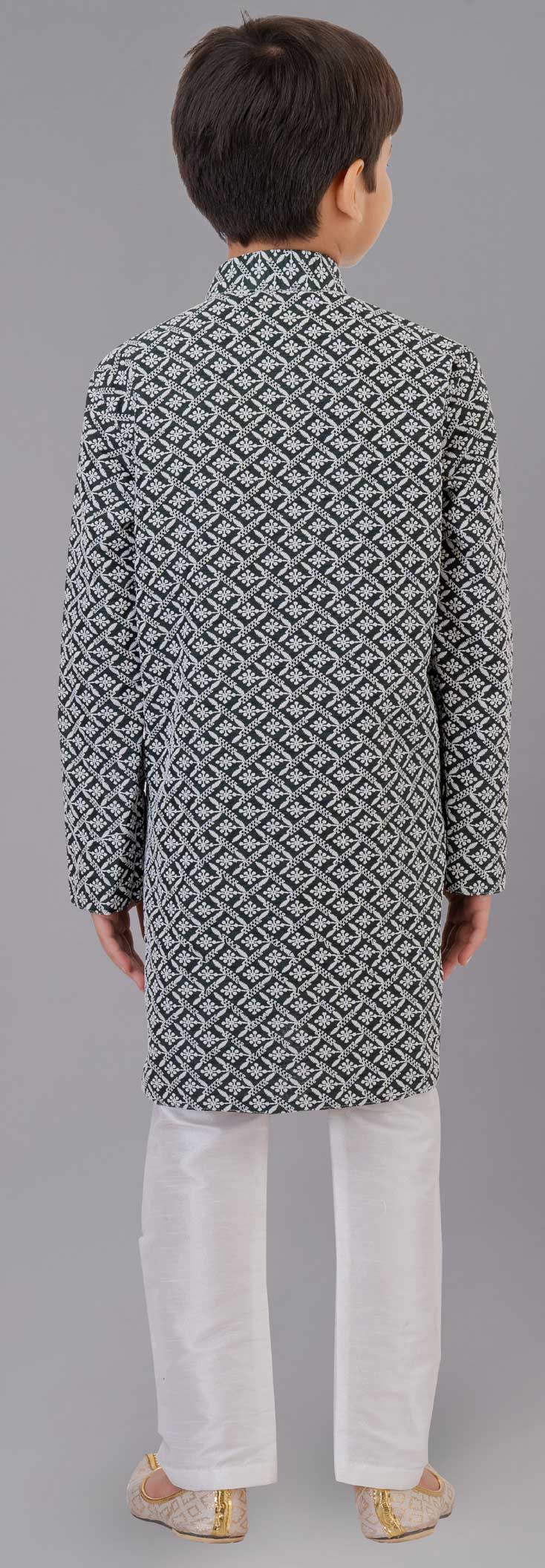 Georgette Boys Kurta Pyjama in Black and Grey with Embroidered work