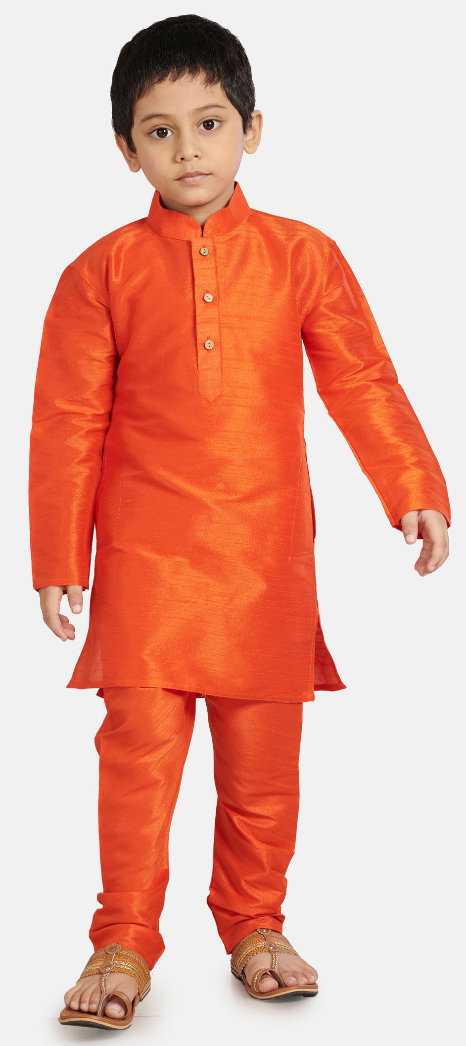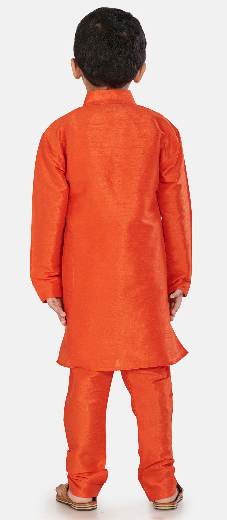 Orange color Boys Kurta Pyjama in Silk cotton fabric with Thread work : 1690461