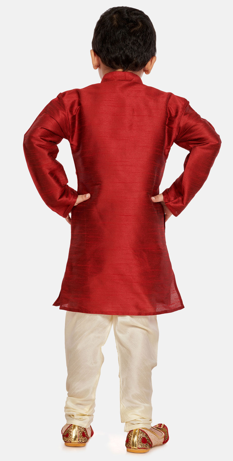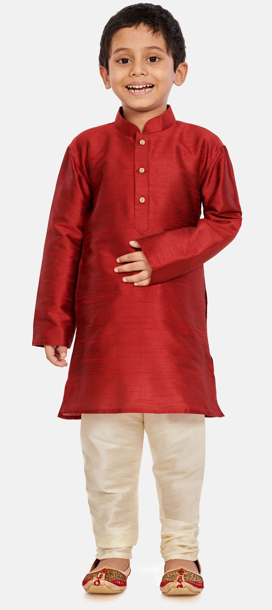 Red and Maroon color Boys Kurta Pyjama in Silk cotton fabric with Thread work : 1690448