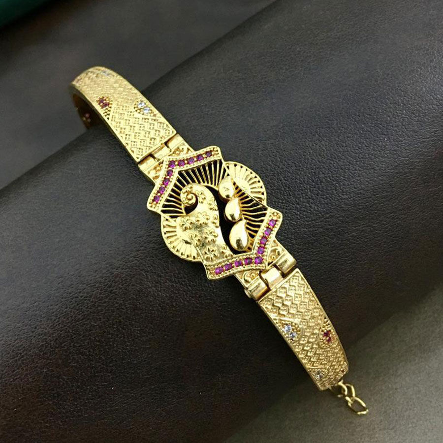 Gold Rodium Polish Pink and Majenta color Bracelet in Metal Alloy studded with CZ Diamond