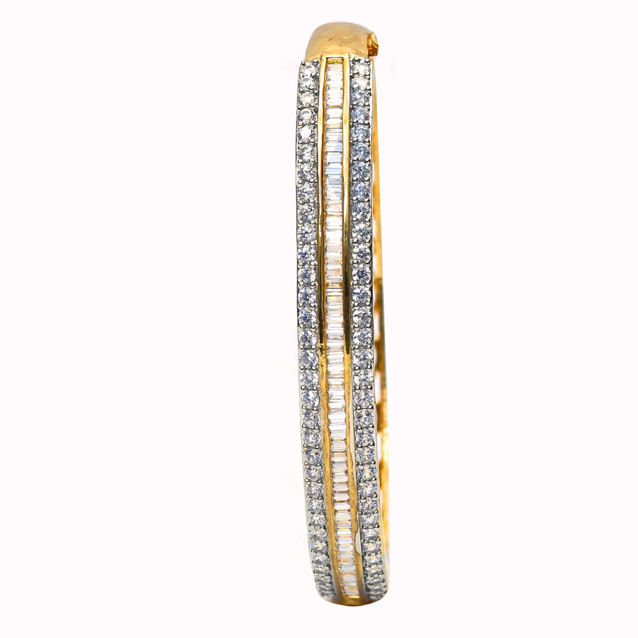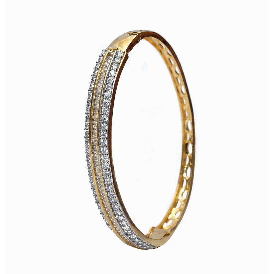 Gold Rodium Polish White and Off White color Bracelet in Metal Alloy studded with American Diamond