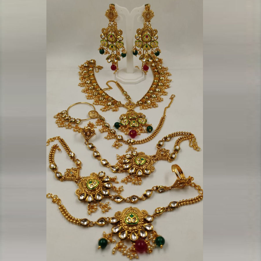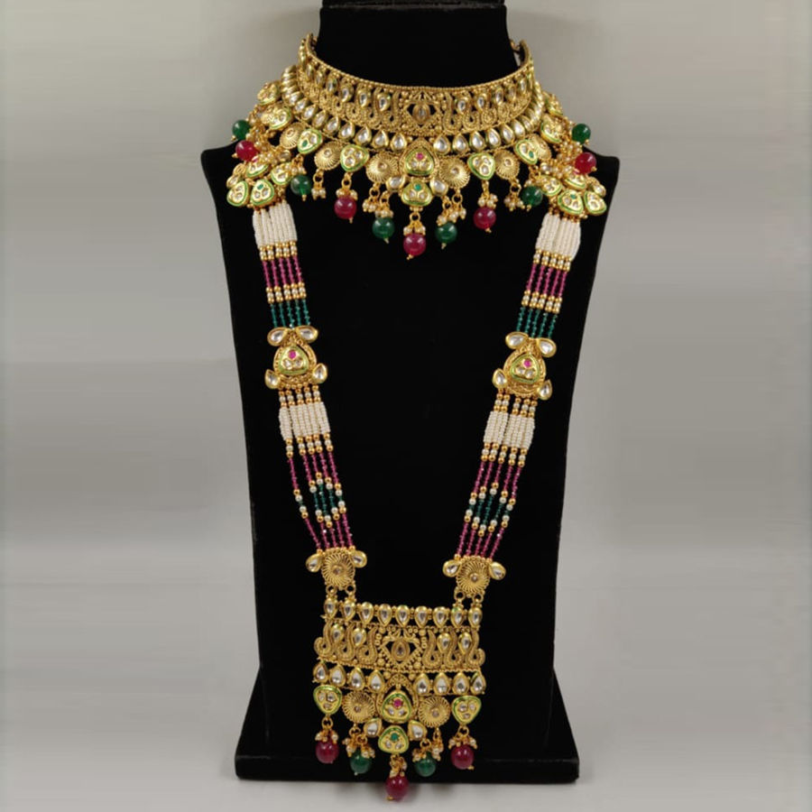 Gold Rodium Polish Multicolor color Bridal Jewelry in Copper studded with Kundan