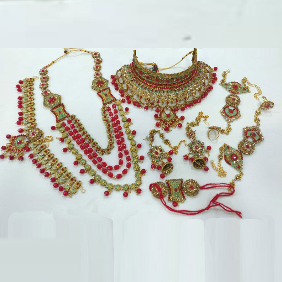 Gold Rodium Polish Pink and Majenta Bridal Jewelry