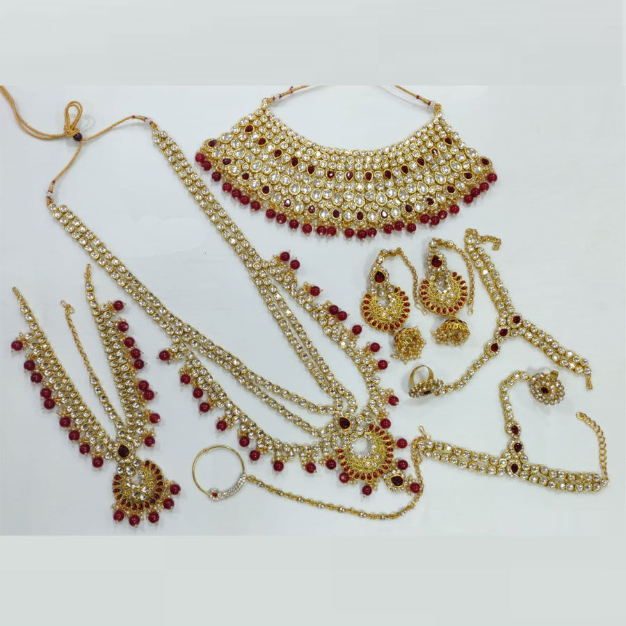 Gold Rodium Polish Red and Maroon Bridal Jewelry