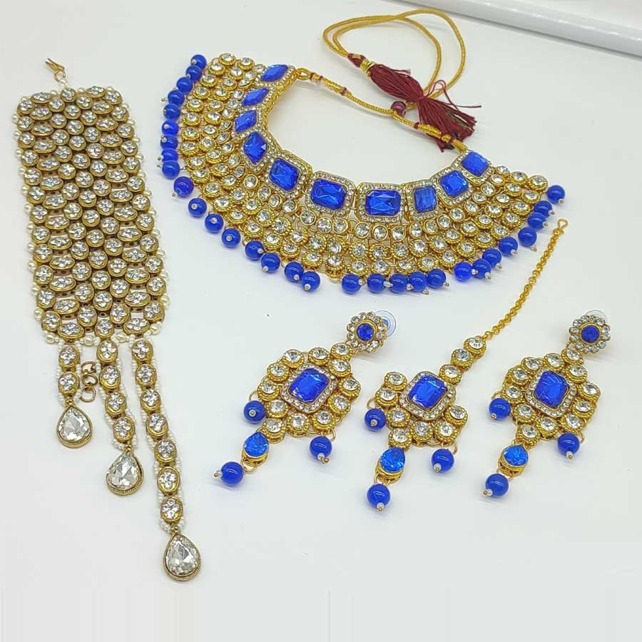 Gold Rodium Polish Blue, White and Off White color Bridal Jewelry in Metal Alloy studded with CZ Diamond