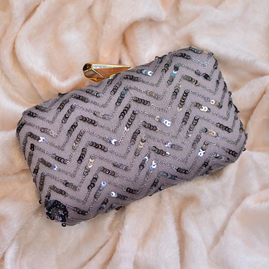 Black and Grey color Clutches in Cotton fabric with Sequence work