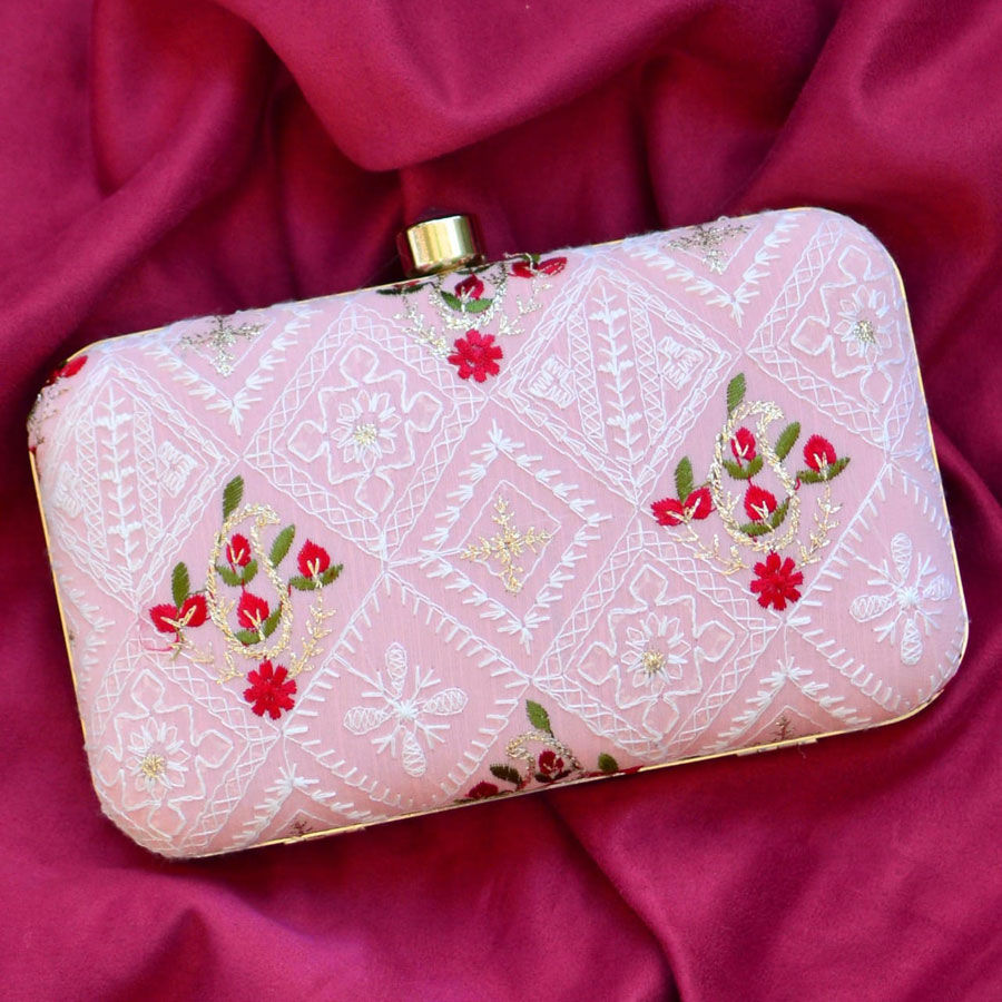 Pink and Majenta color Clutches in Cotton fabric with Embroidered, Resham, Thread work