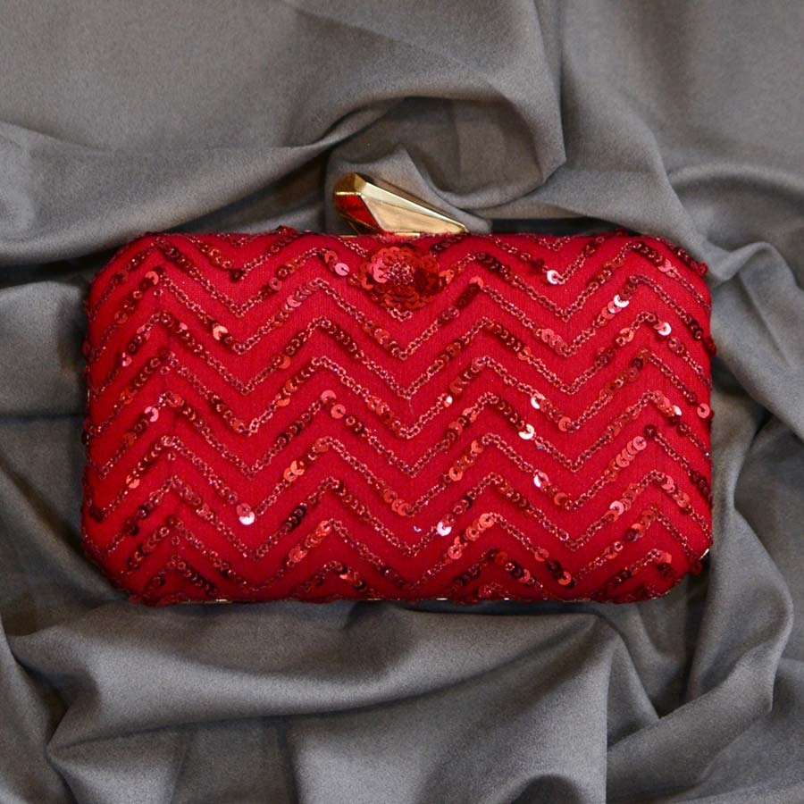 Red and Maroon color Clutches in Cotton fabric with Sequence work
