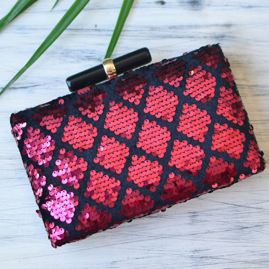 Black and Grey color Clutches in Fancy Fabric fabric with Sequence work