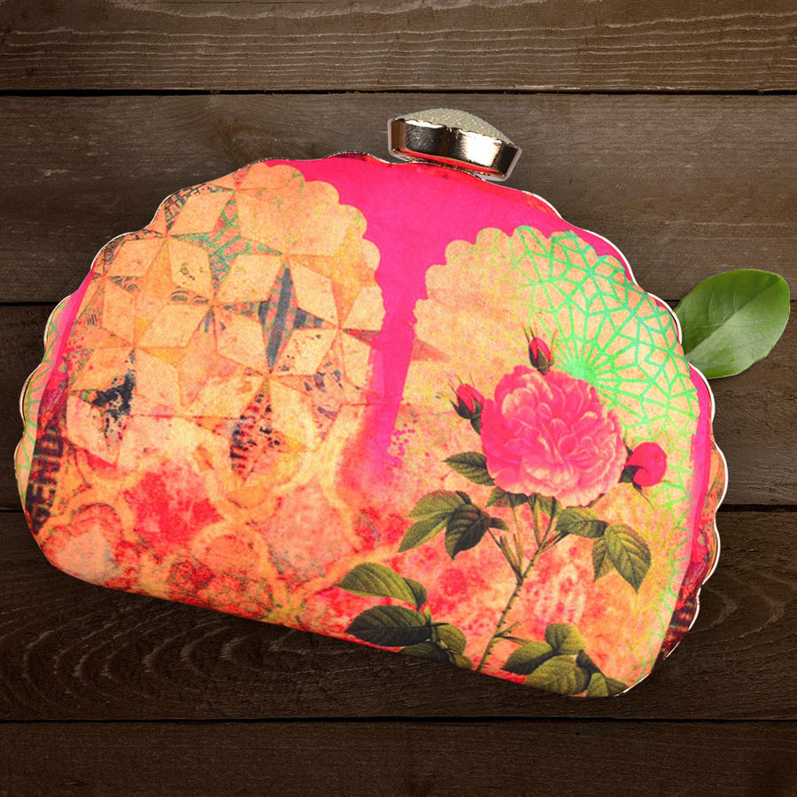 Multicolor color Clutches in Fancy Fabric fabric with Floral, Printed work