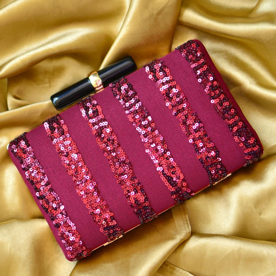 Pink and Majenta color Clutches in Fancy Fabric fabric with Sequence work