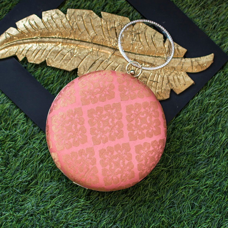 Pink and Majenta color Clutches in Polyester Silk fabric with Weaving work