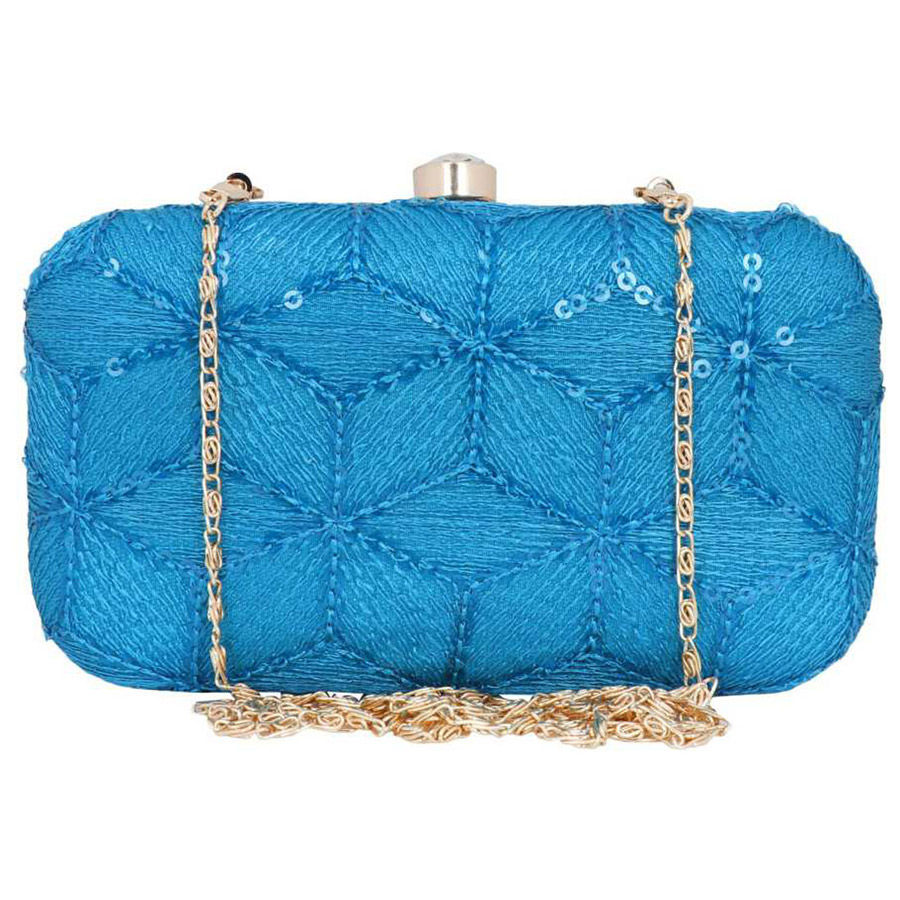 Blue color Clutches in Synthetic fabric with Embroidered, Sequence, Thread work