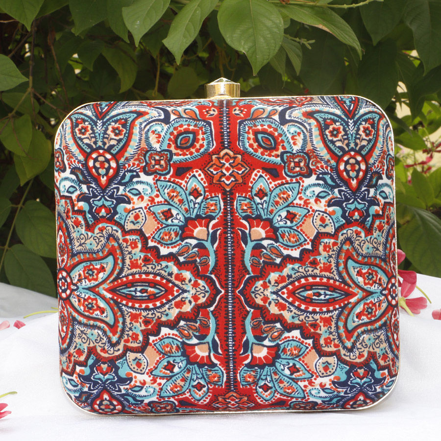 Multicolor color Clutches in Synthetic fabric with Printed work