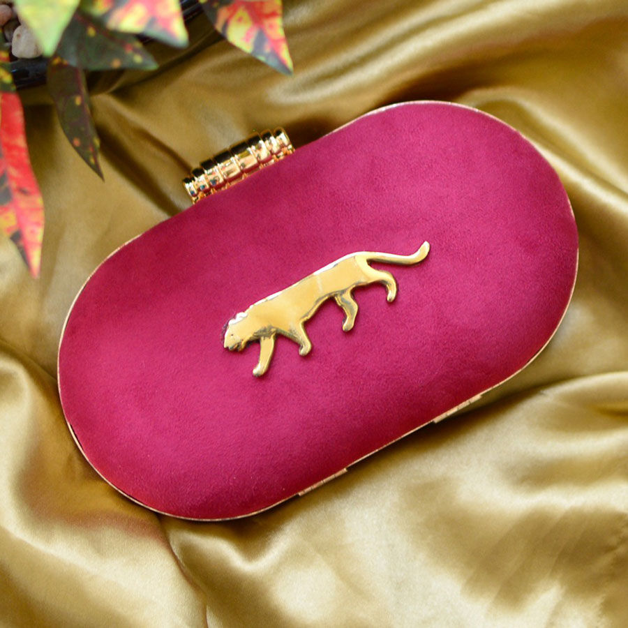 Pink and Majenta color Clutches in Velvet fabric with Broches work