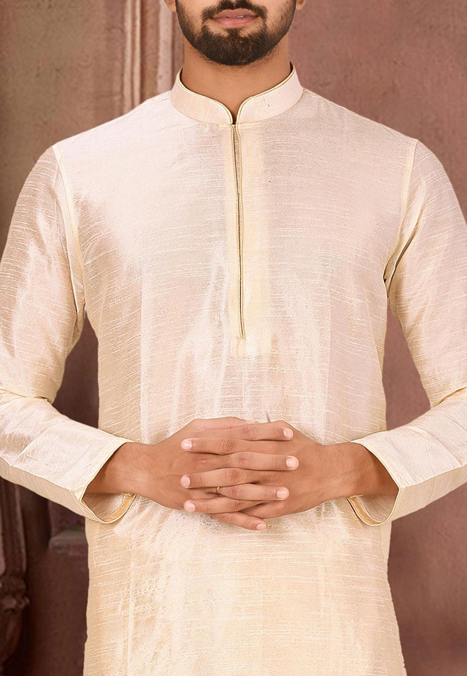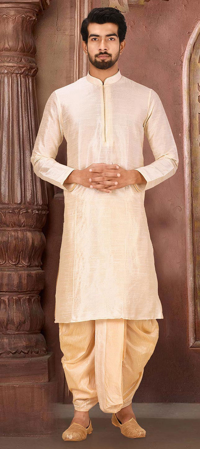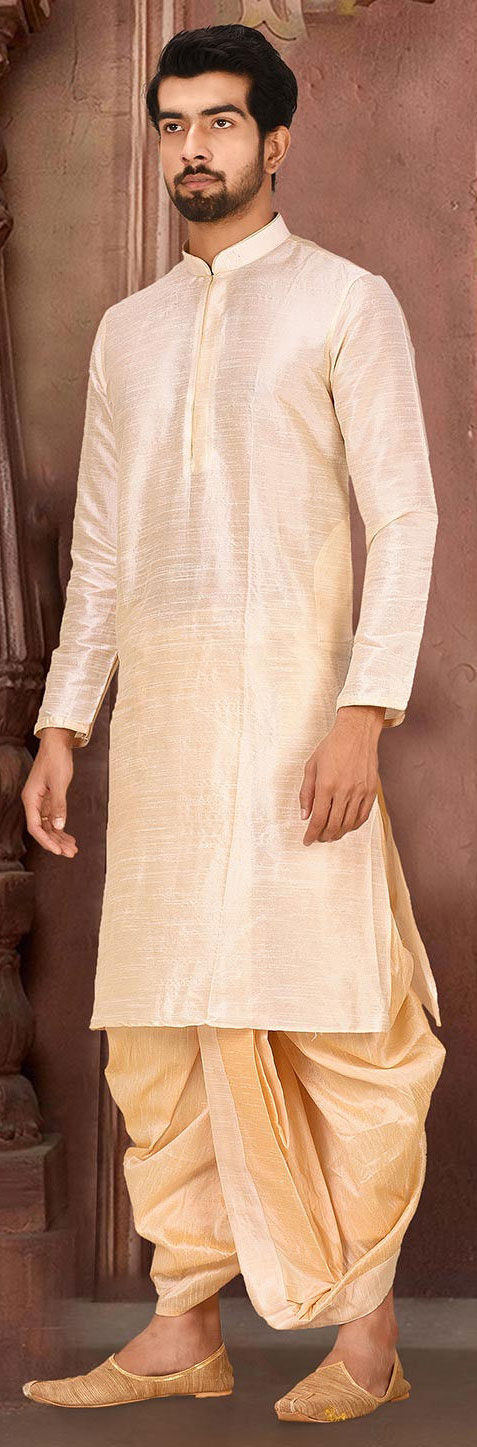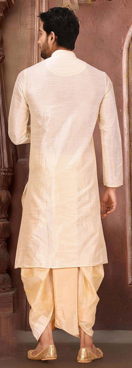 Beige and Brown color Dhoti Kurta in Art Dupion Silk fabric with Thread work