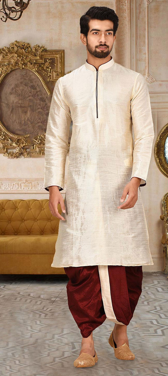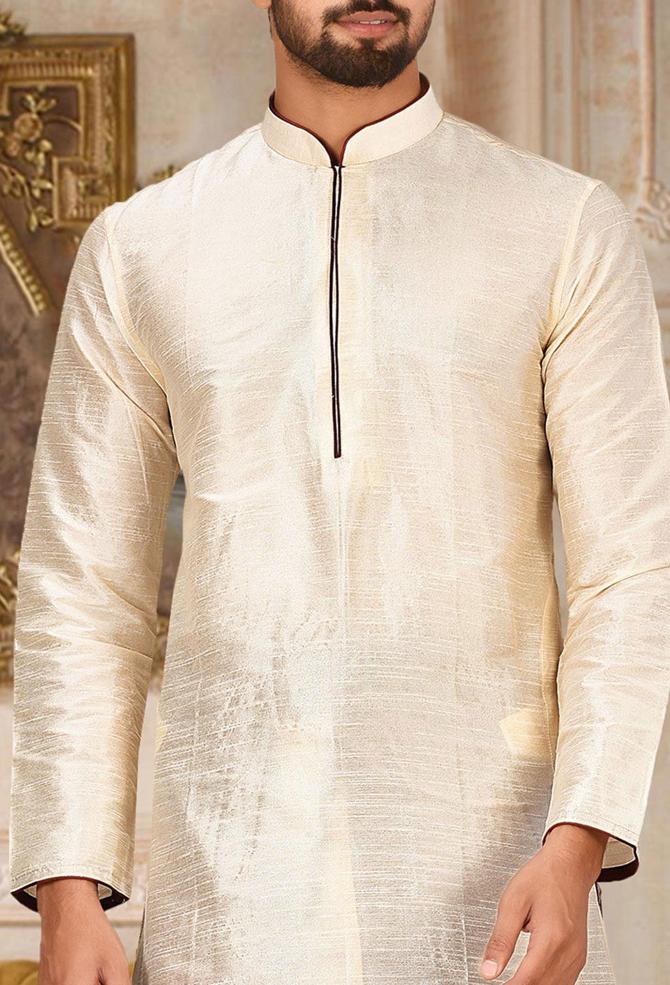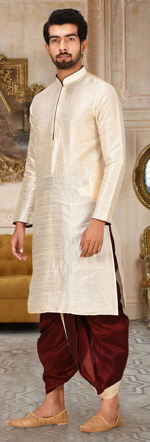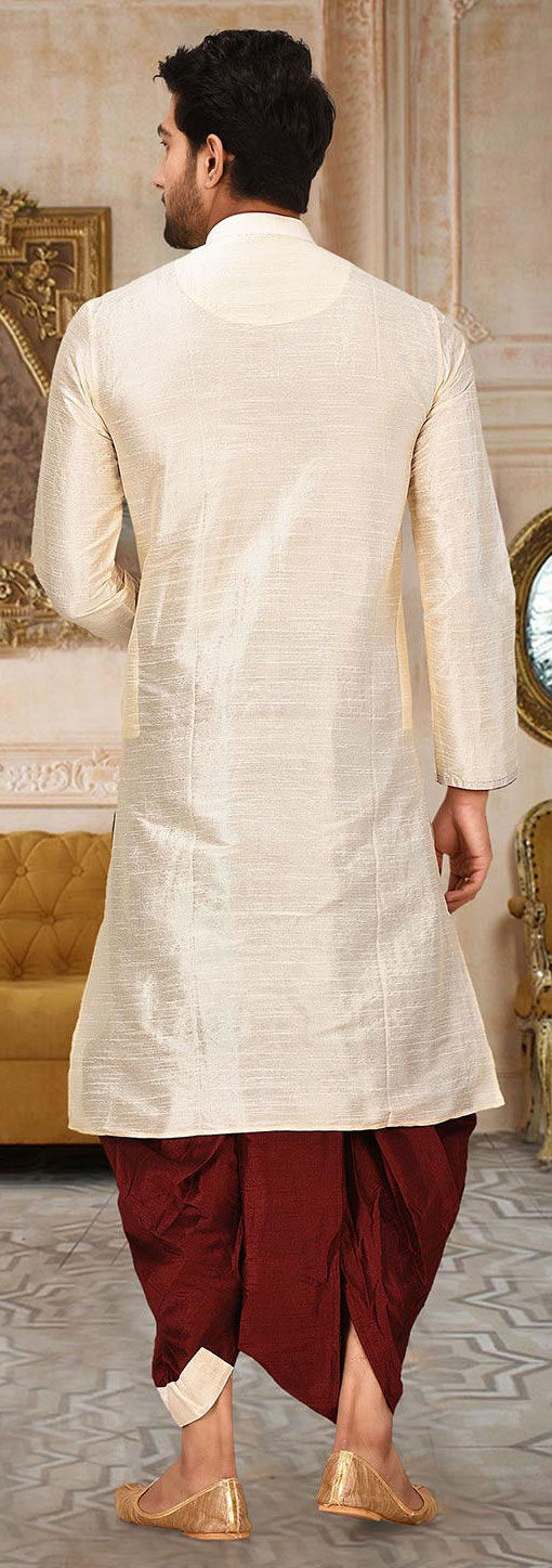 Beige and Brown color Dhoti Kurta in Art Dupion Silk fabric with Thread work