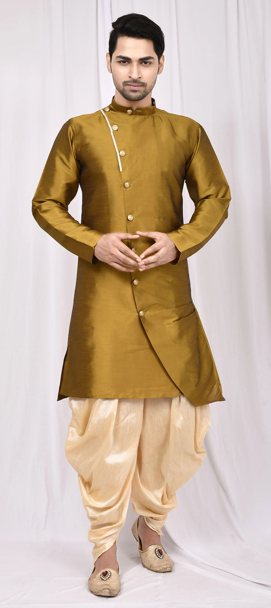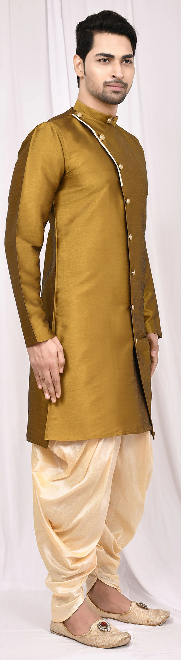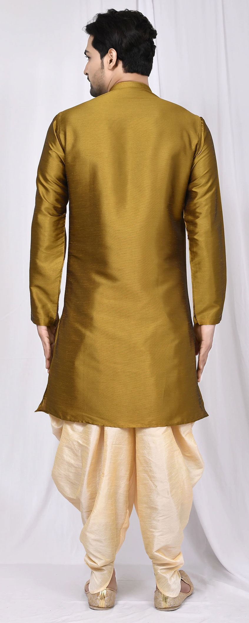 Beige and Brown color Dhoti Kurta in Art Dupion Silk fabric with Thread work