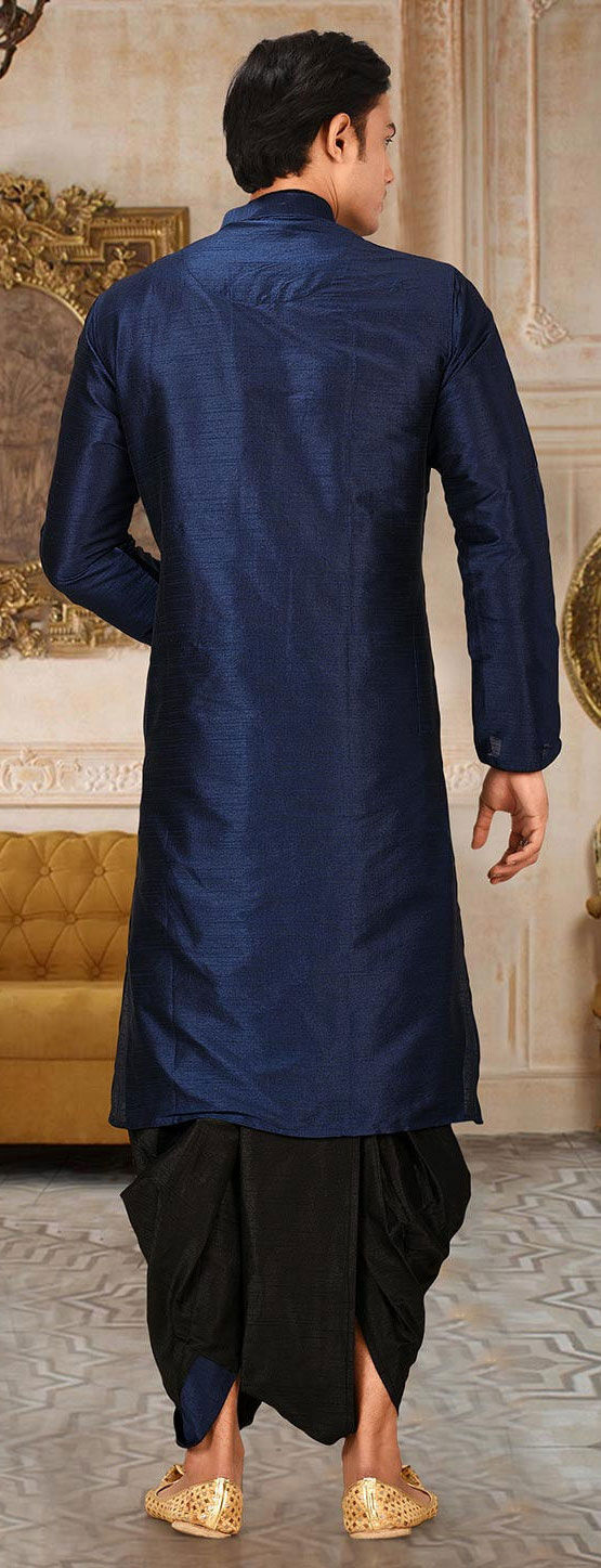 Blue color Dhoti Kurta in Art Dupion Silk fabric with Thread work
