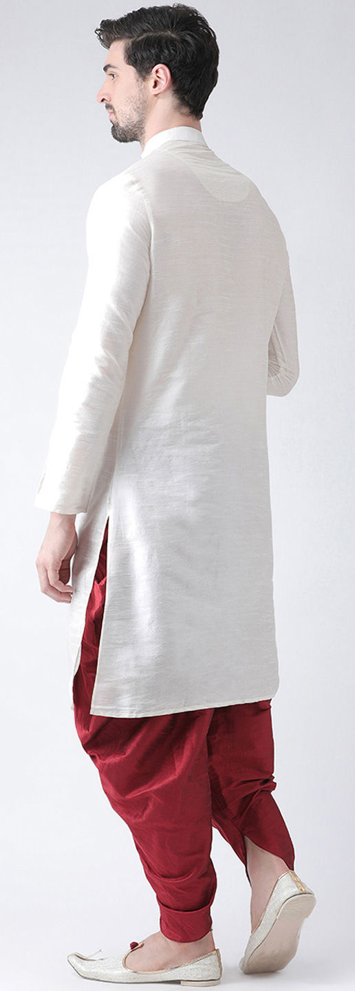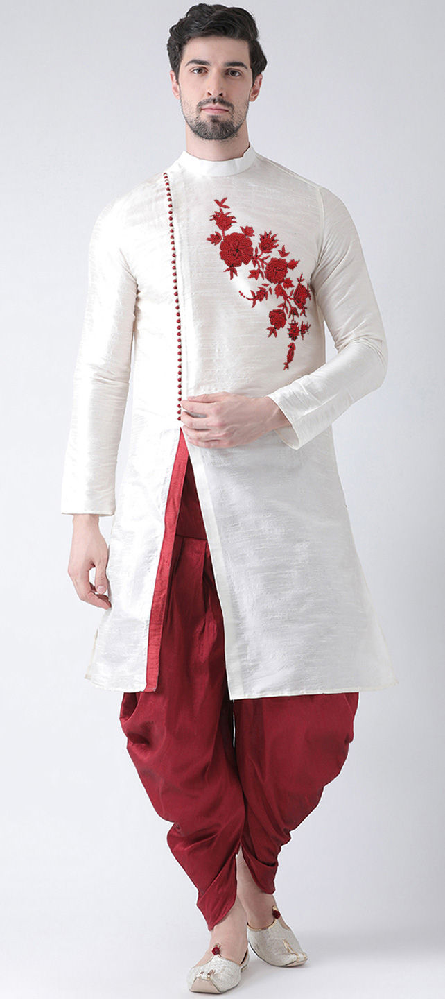 White and Off White color Dhoti Kurta in Art Silk fabric with Embroidered work