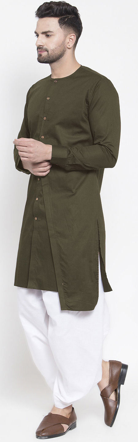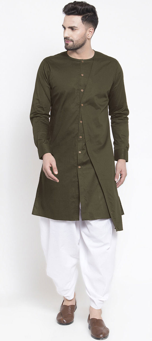 Green color Dhoti Kurta in Cotton fabric with Thread work