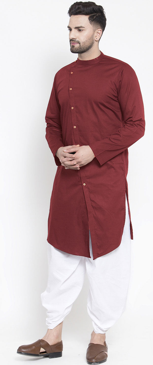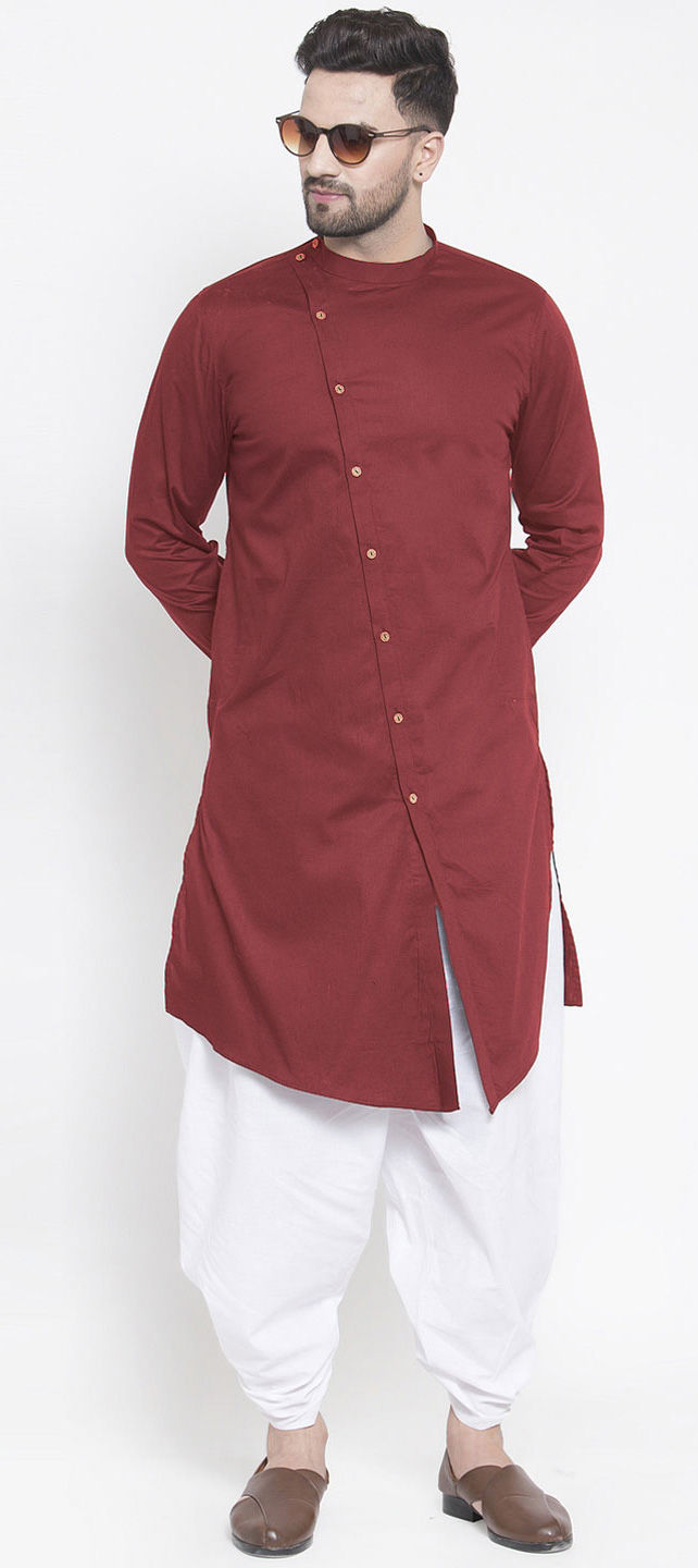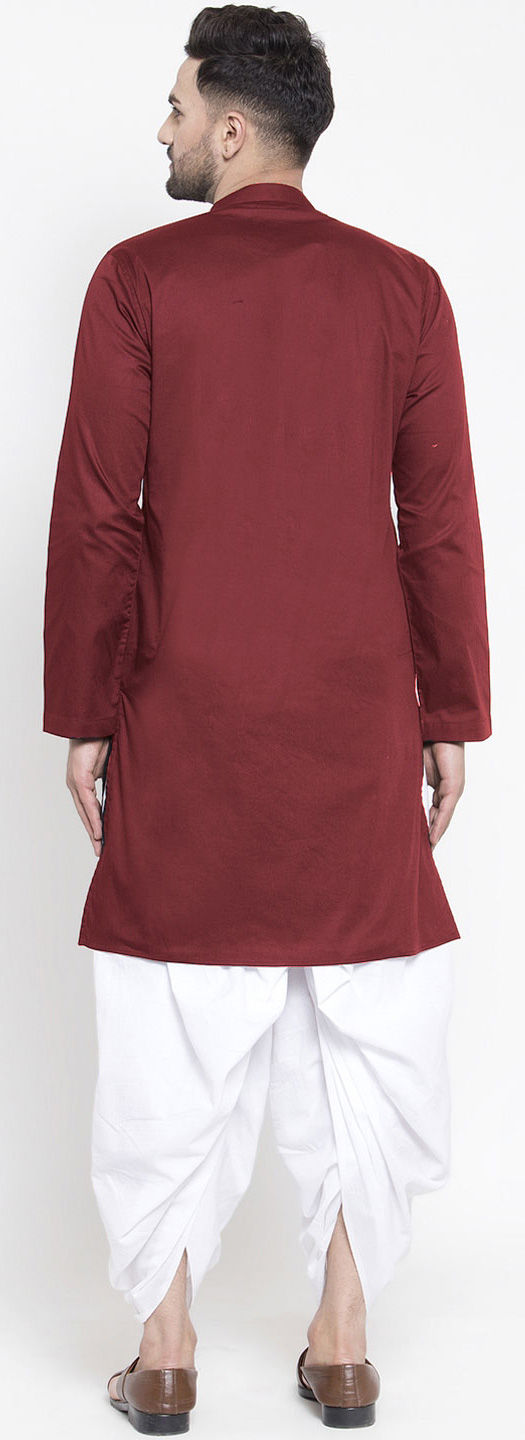 Red and Maroon color Dhoti Kurta in Cotton fabric with Thread work