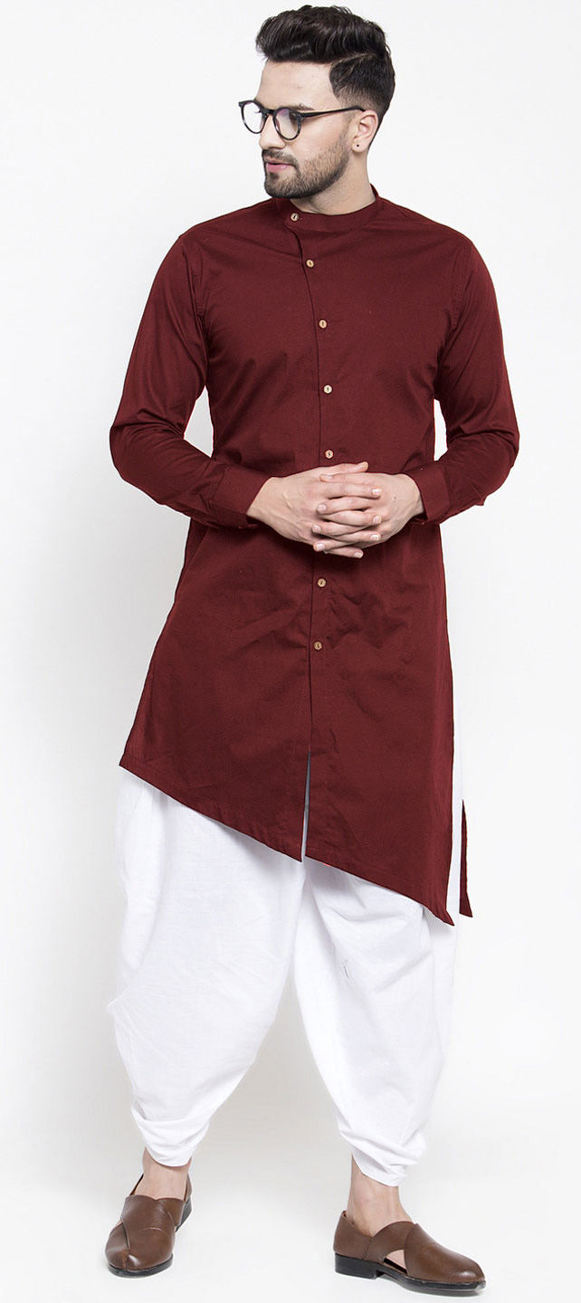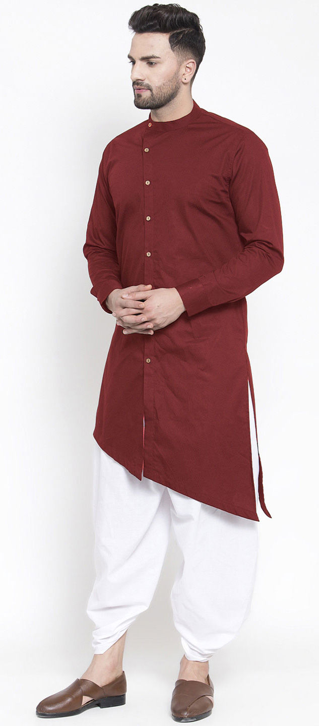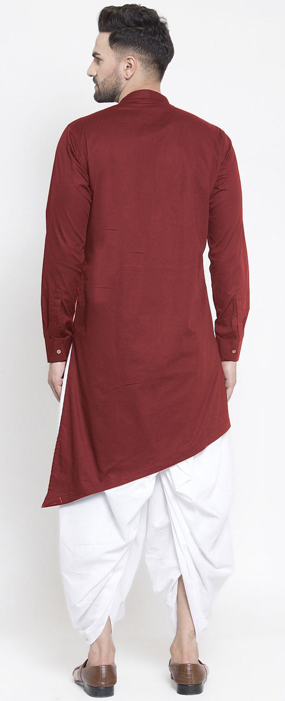 Red and Maroon color Dhoti Kurta in Cotton fabric with Thread work