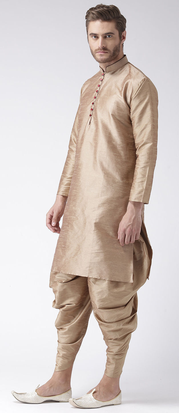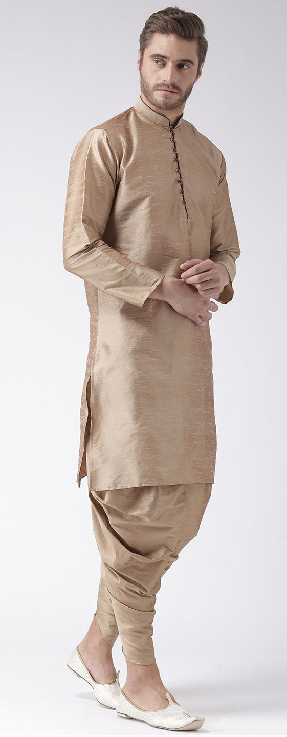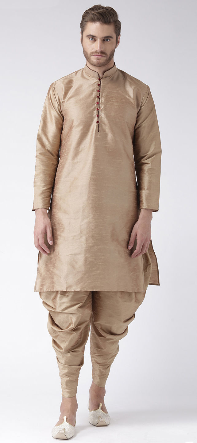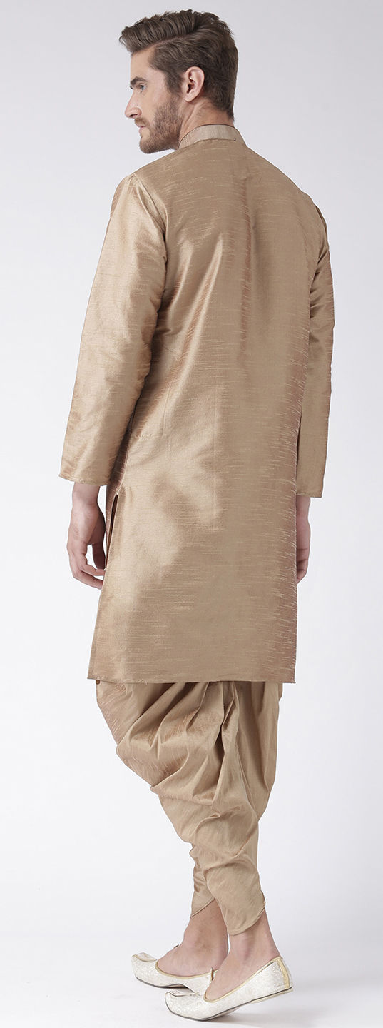 Beige and Brown color Dhoti Kurta in Dupion Silk fabric with Thread work