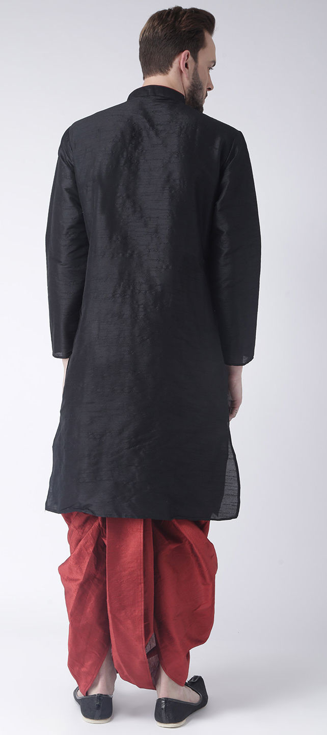 Black and Grey color Dhoti Kurta in Dupion Silk fabric with Thread work