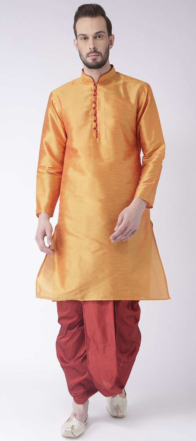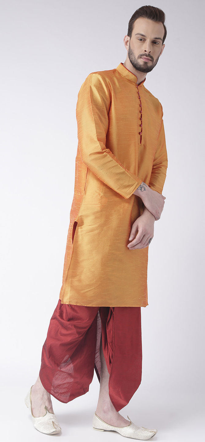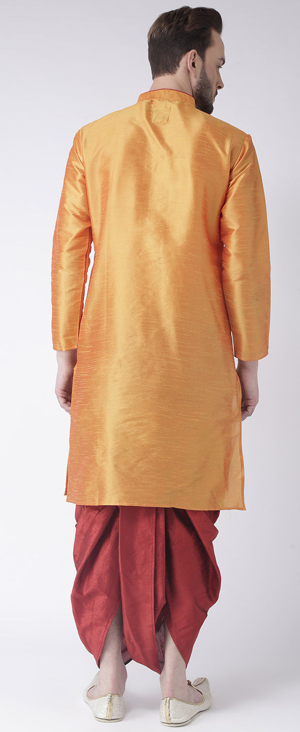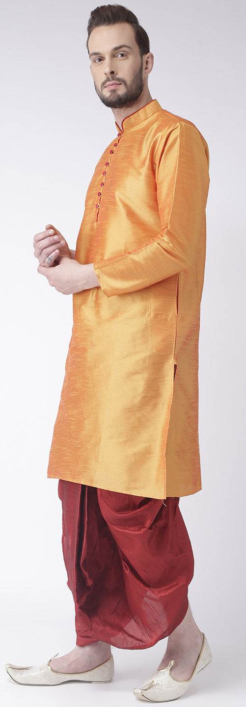 Gold color Dhoti Kurta in Dupion Silk fabric with Thread work