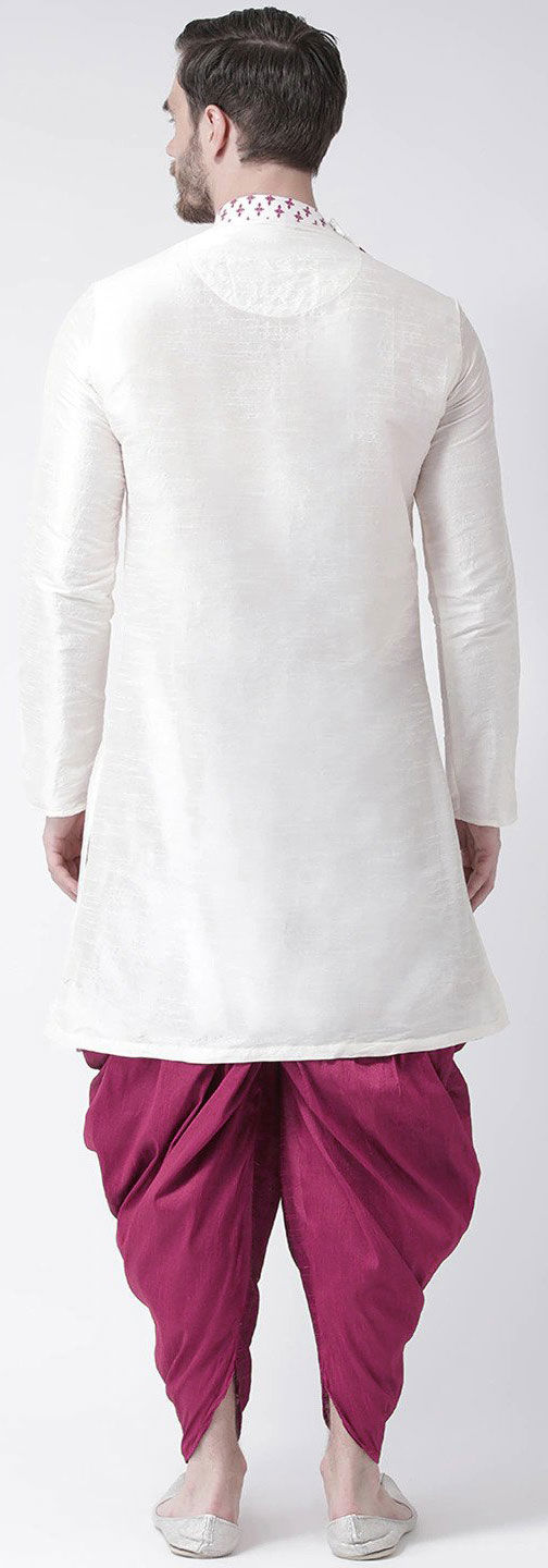 White and Off White color Dhoti Kurta in Dupion Silk fabric with Printed work