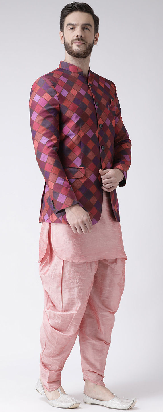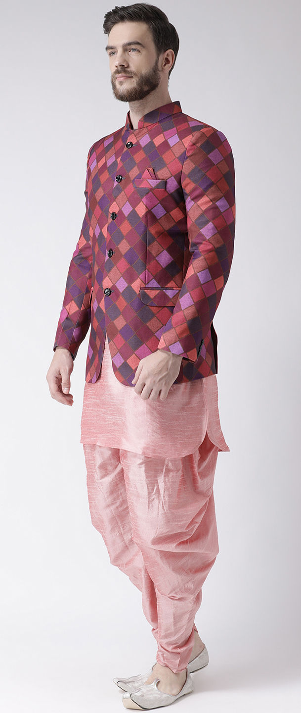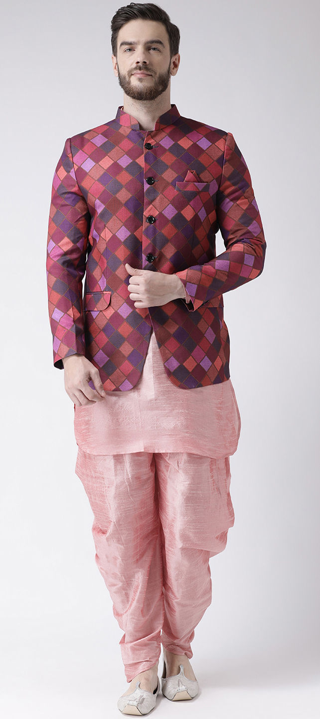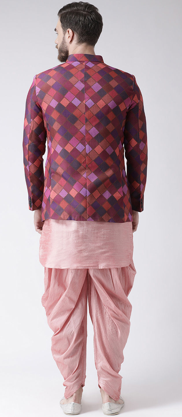 Multicolor, Pink and Majenta color Dhoti Kurta with Jacket in Polyester Silk fabric with Printed work