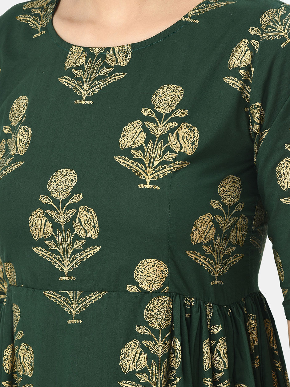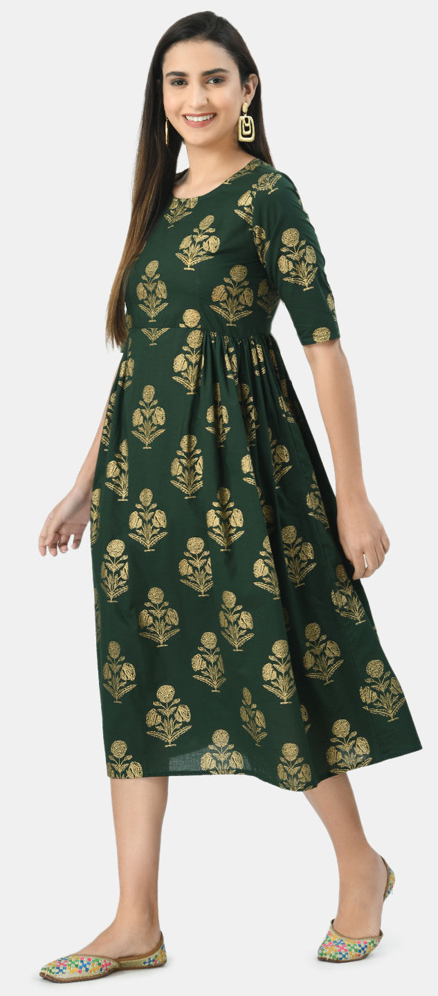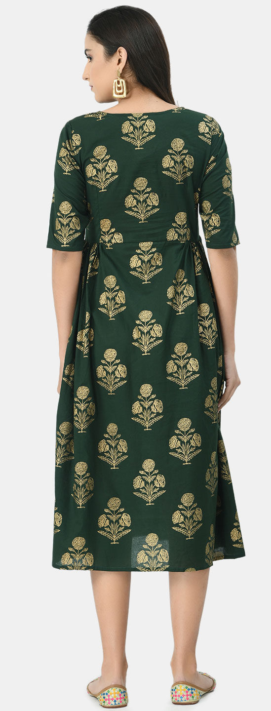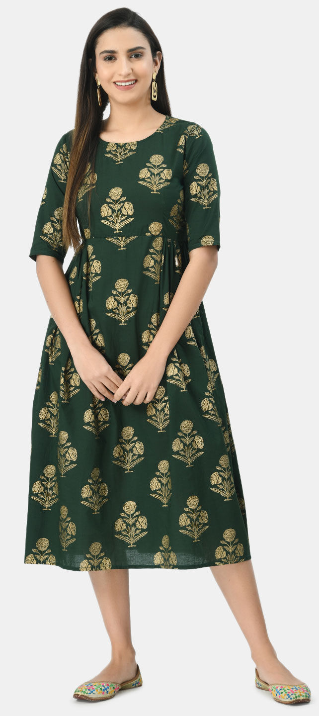 Green color Dress in Cotton fabric with Printed work