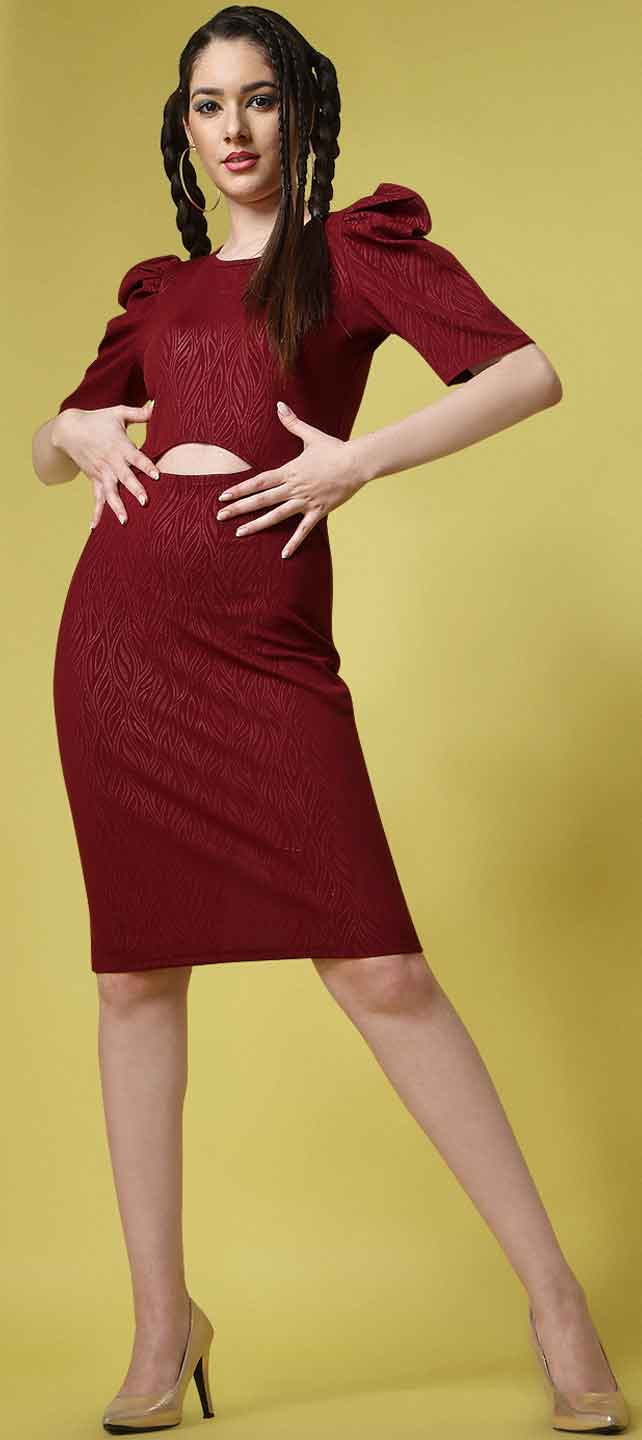 Red and Maroon color Dress in Lycra fabric with Printed work