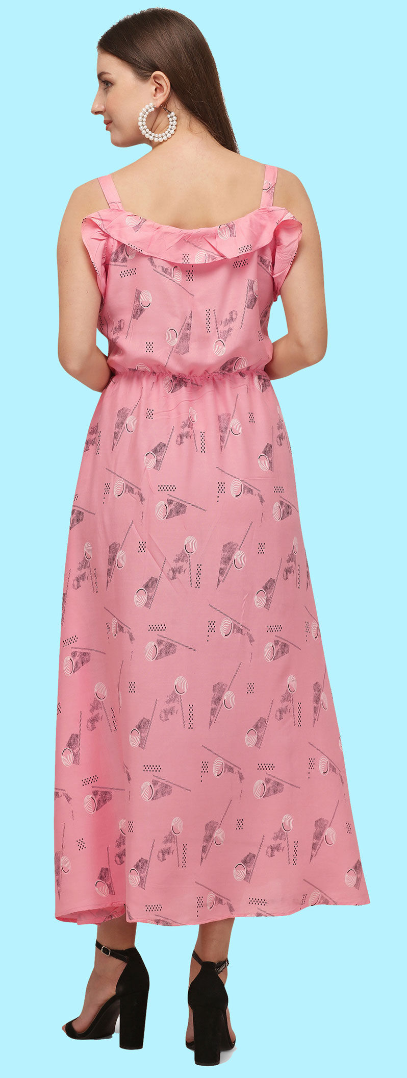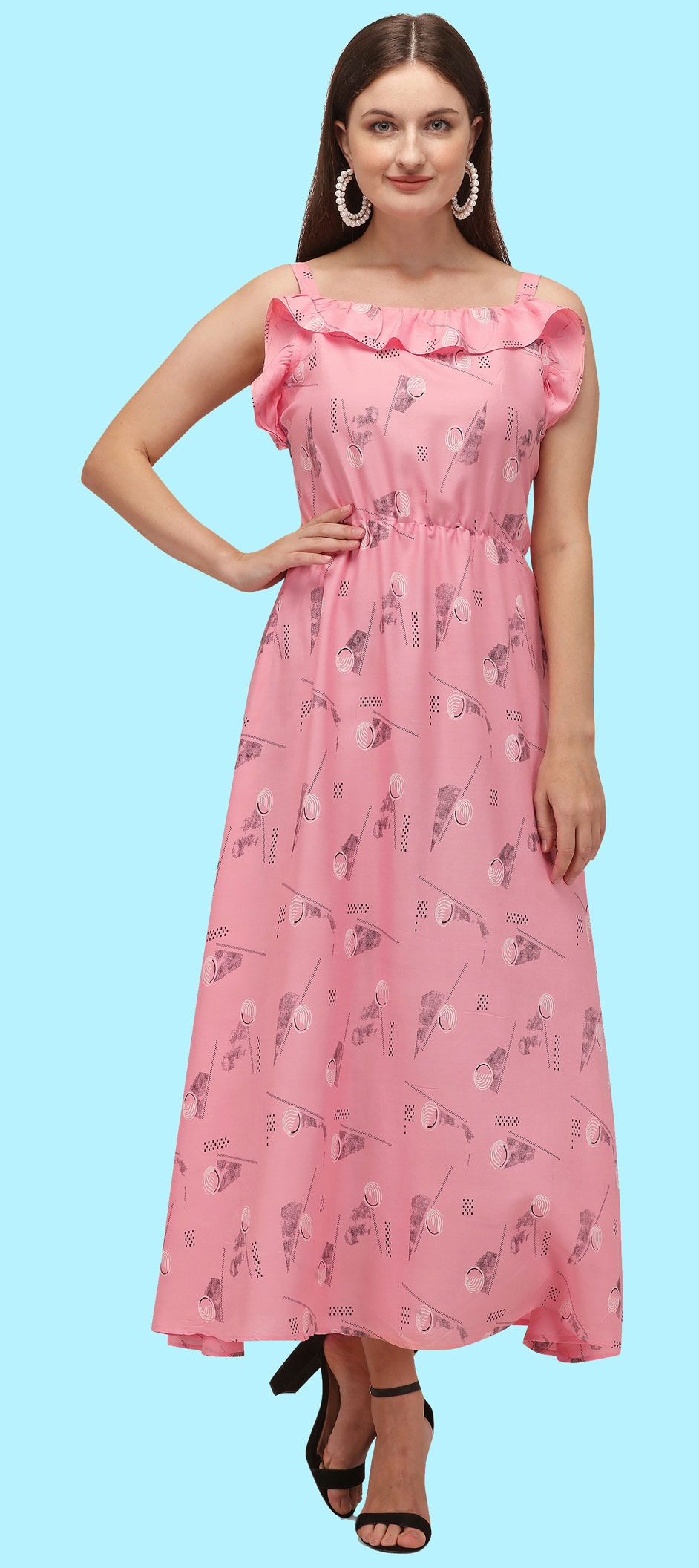 Pink and Majenta color Dress in Poly cotton fabric with Printed work