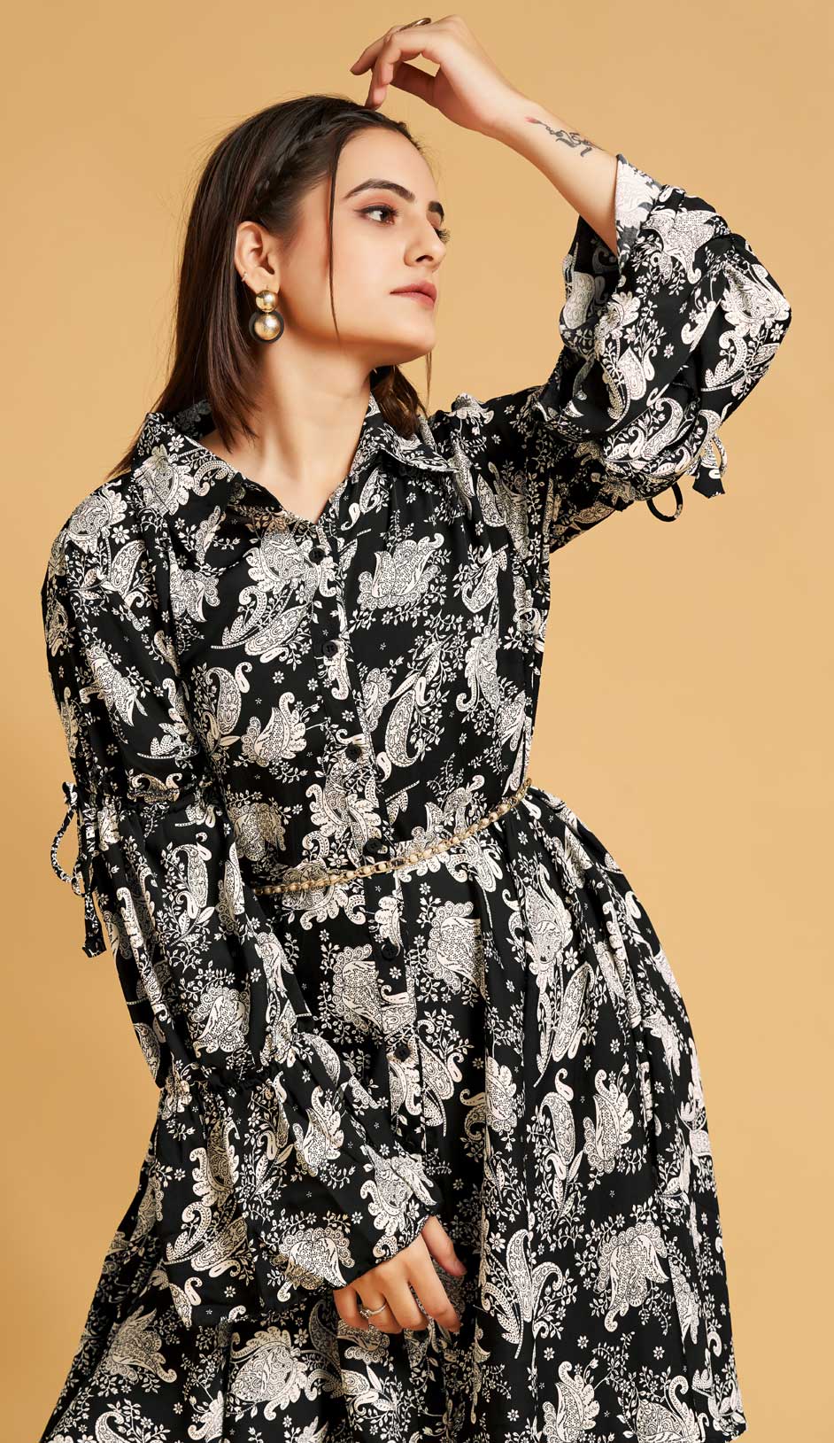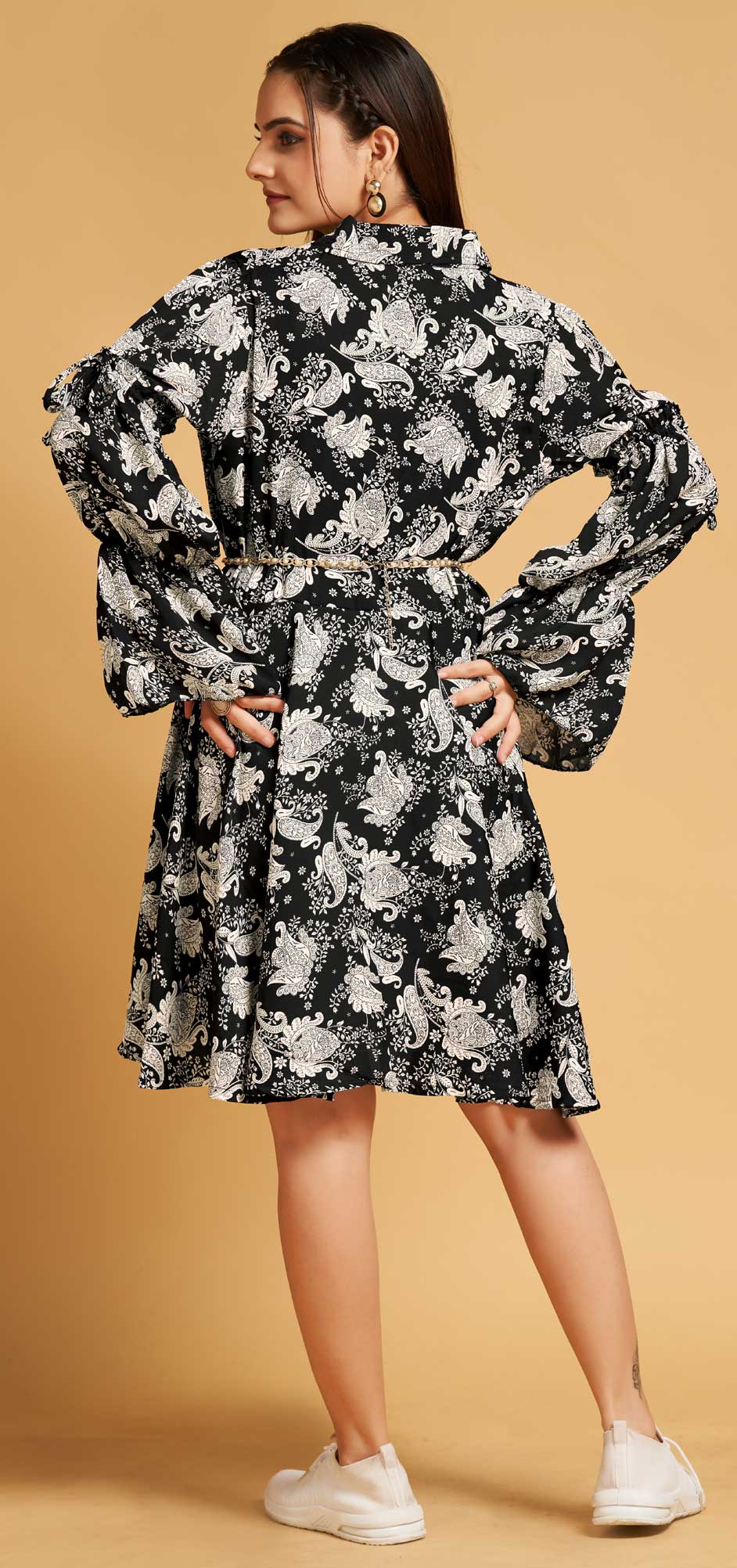 Black and Grey color Dress in Polyester Silk fabric with Floral, Printed work