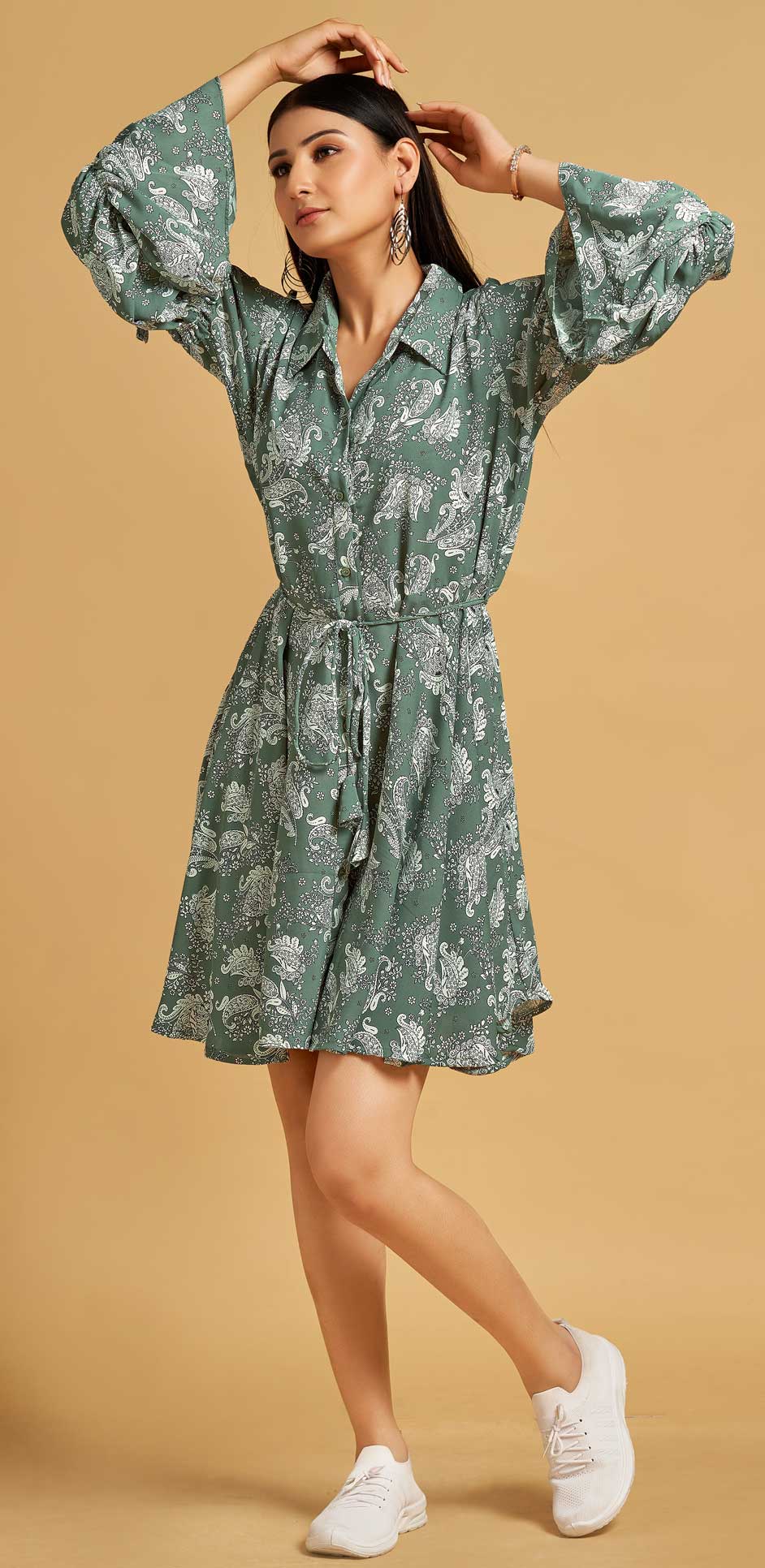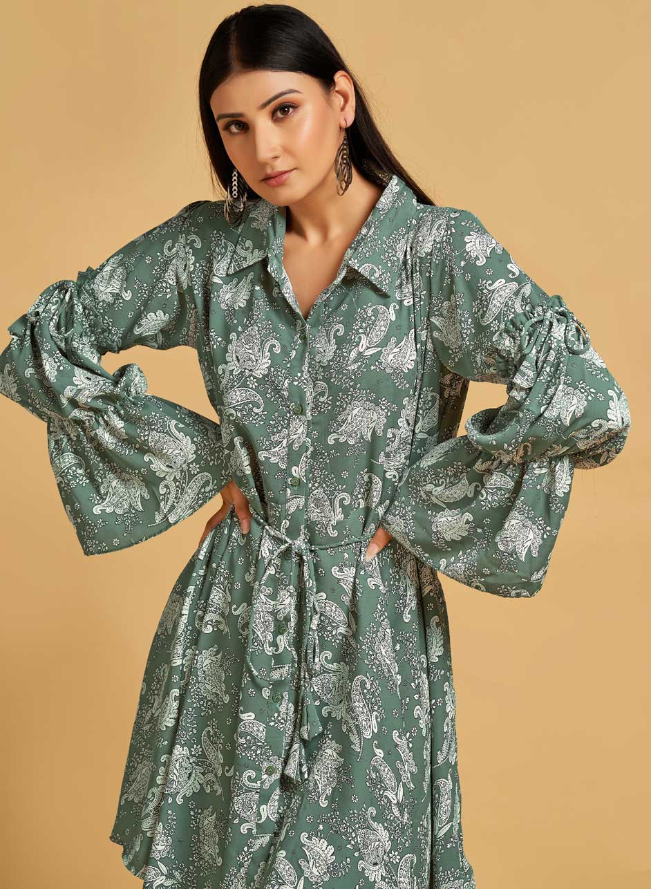 Green color Dress in Polyester Silk fabric with Floral, Printed work