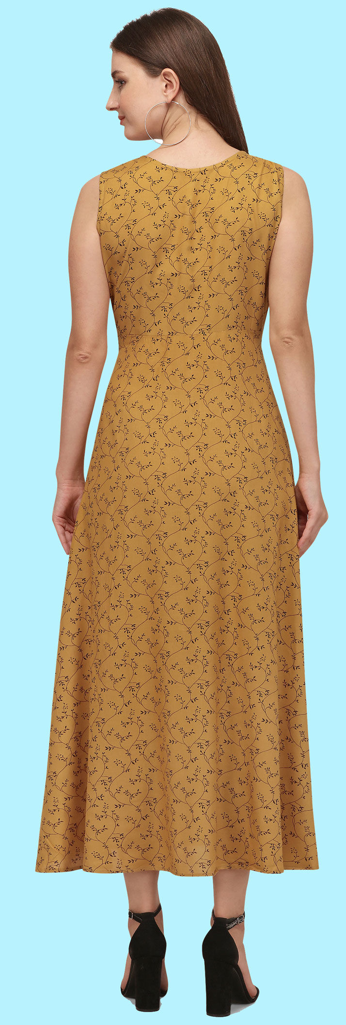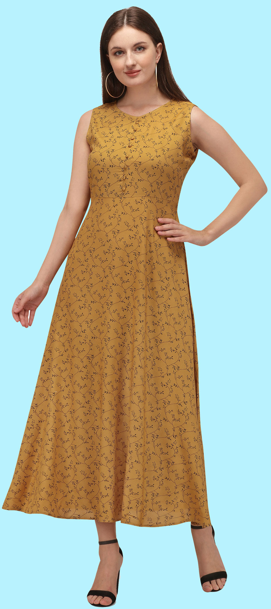 Yellow color Dress in Rayon fabric with Floral, Printed work