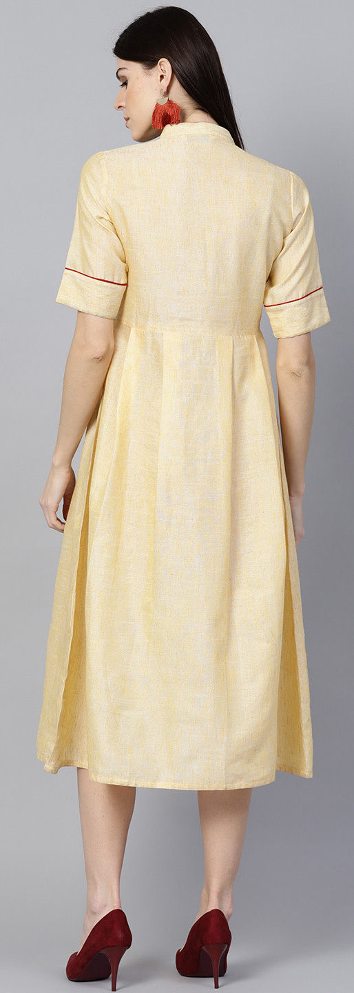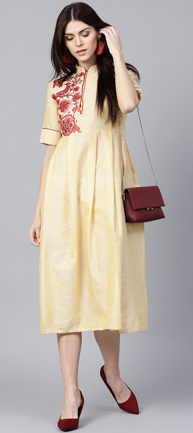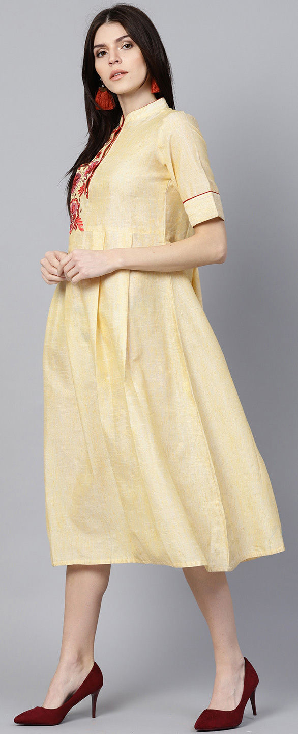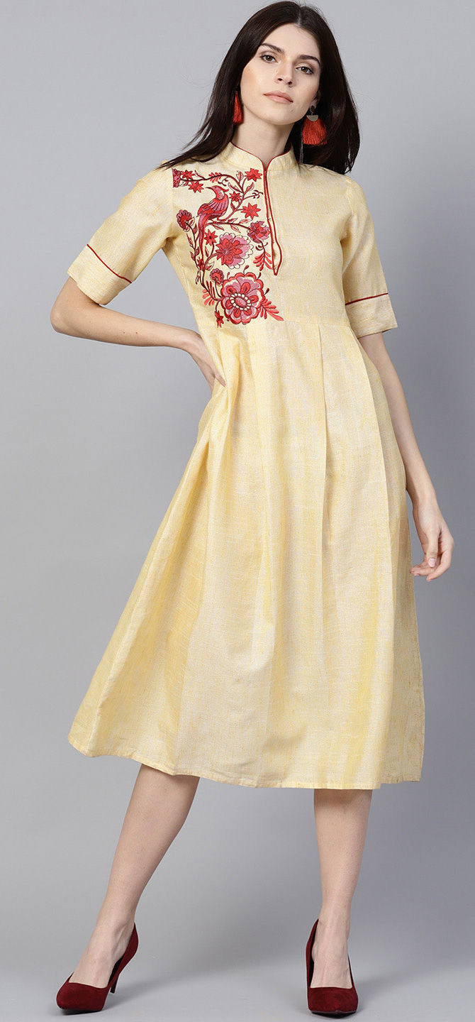 Yellow color Dress in Rayon fabric with Embroidered, Thread work