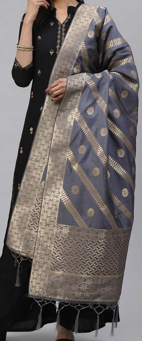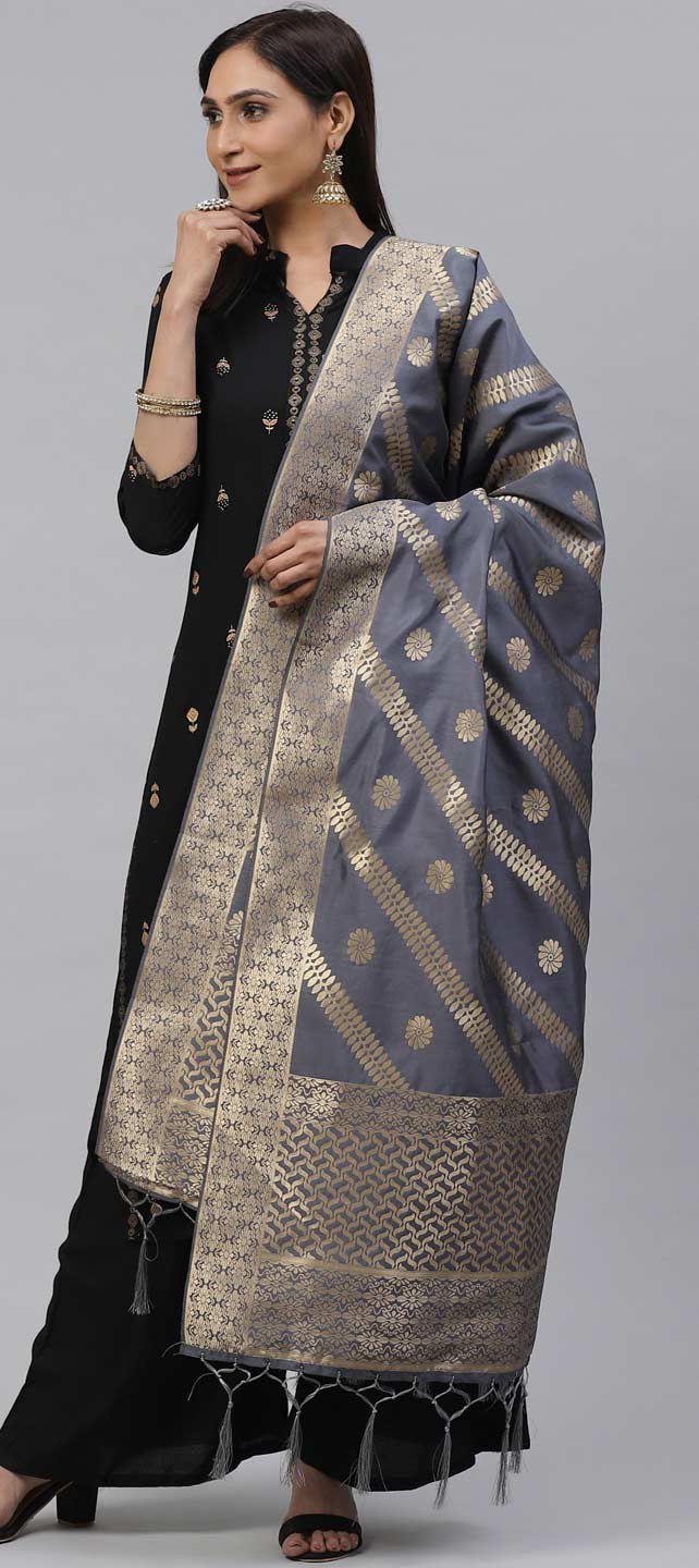 Black and Grey color Dupatta in Art Silk fabric with Weaving work