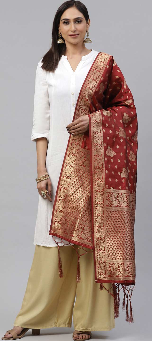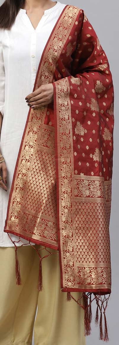 Red and Maroon color Dupatta in Art Silk fabric with Weaving work