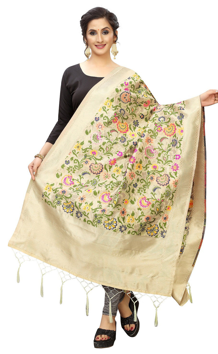 Gold color Dupatta in Banarasi Silk fabric with Weaving work