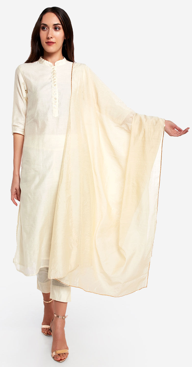 White and Off White color Dupatta in Chanderi Silk fabric with Thread work
