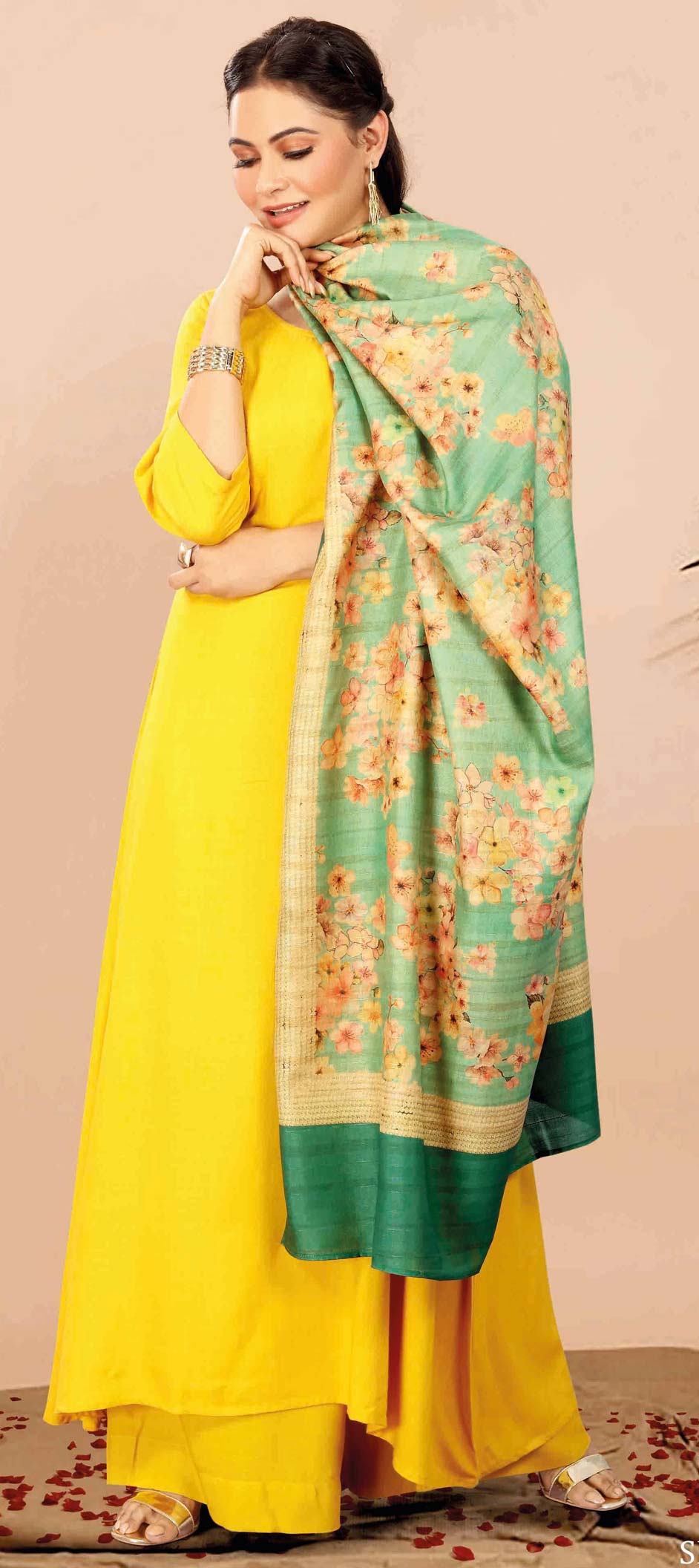 Green color Dupatta in Poly Silk fabric with Digital Print work