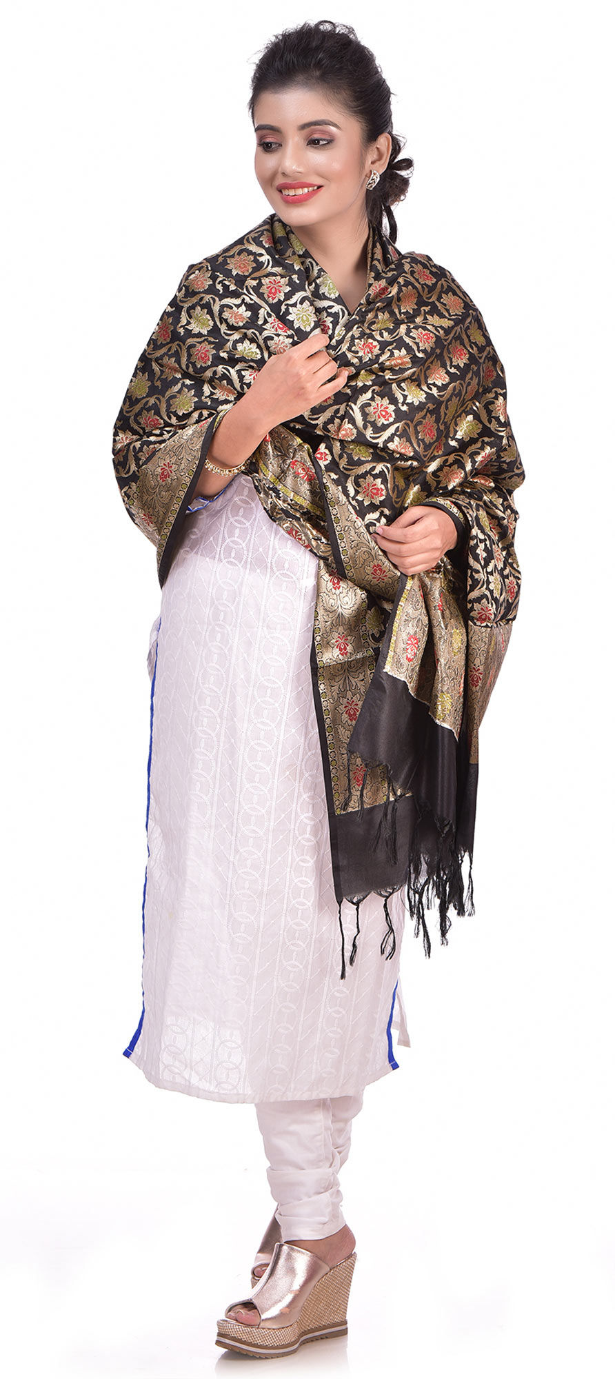 Black and Grey color Dupatta in Silk cotton fabric with Weaving work