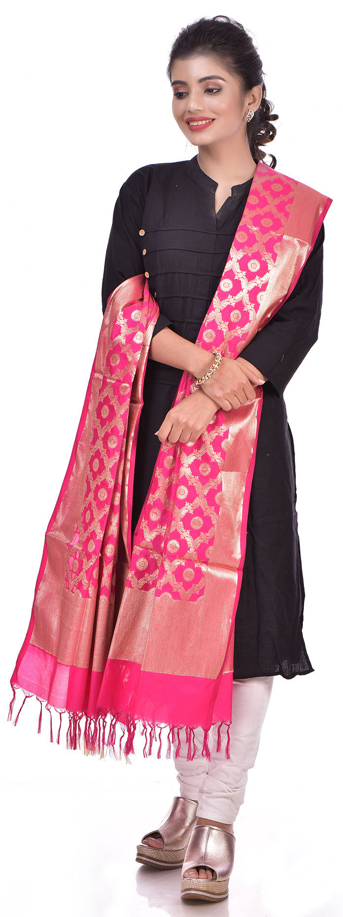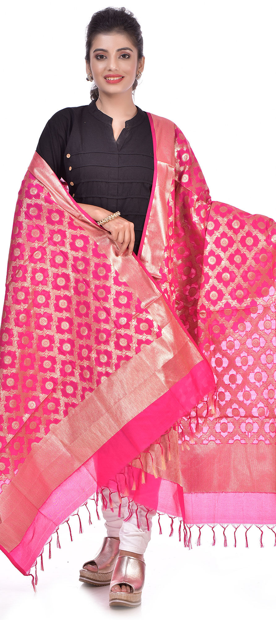 Pink and Majenta color Dupatta in Silk cotton fabric with Weaving work