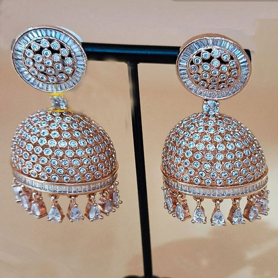 Enamel Beige and Brown color Earrings in Metal Alloy studded with CZ Diamond