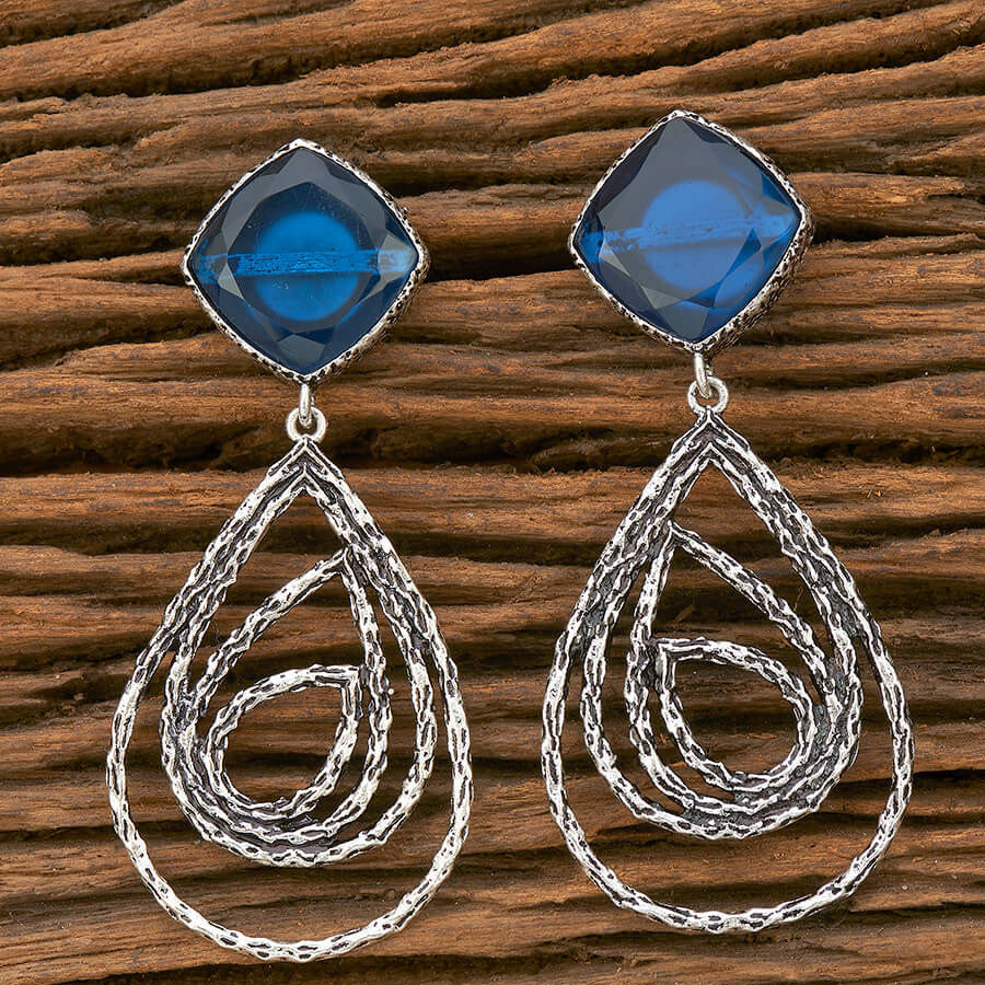 Enamel Blue color Earrings in Metal Alloy studded with CZ Diamond