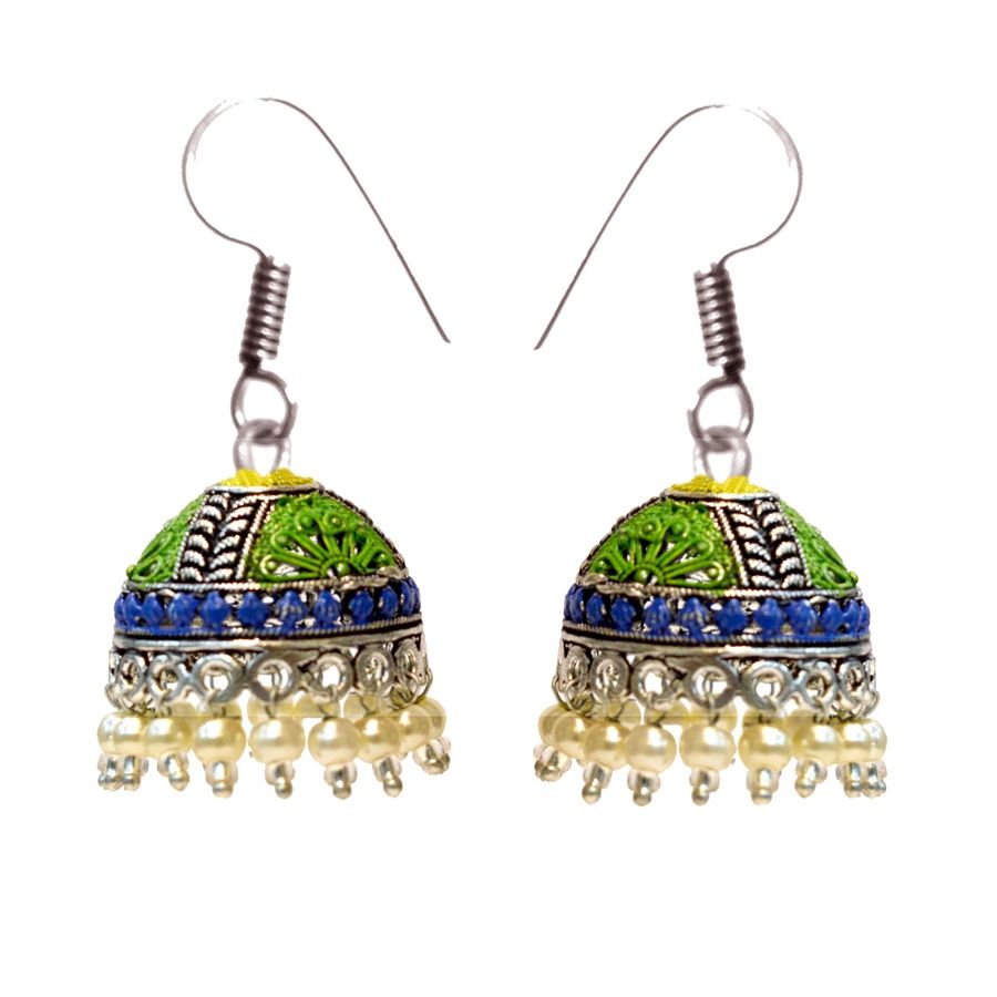 Enamel Multicolor color Earrings in Brass studded with Beads